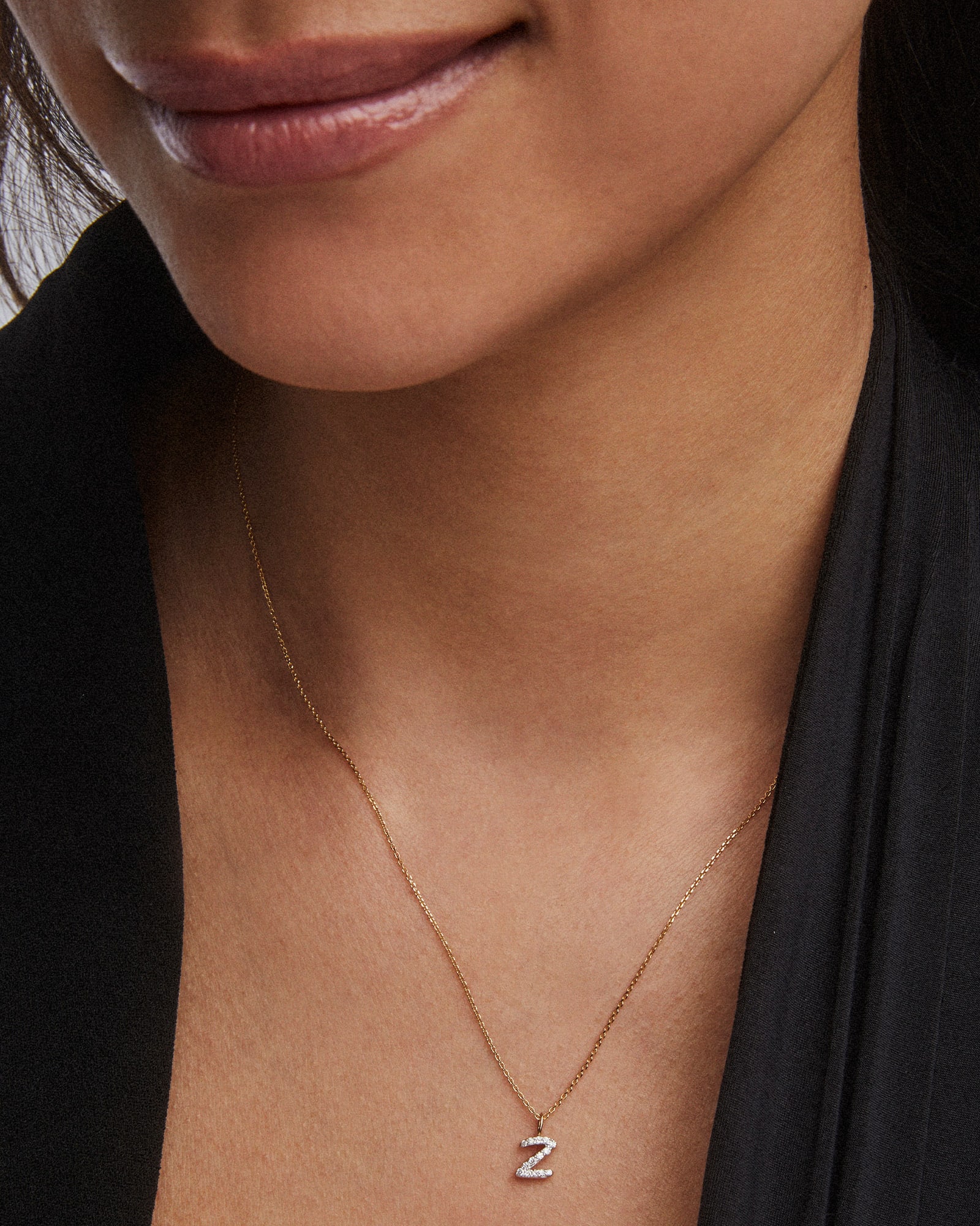 The Diamond Letter Z Pendant Necklace in 14k Yellow Gold is a striking example of sentimental style. Beautifully timeless and personal to each wearer, the Diamond Letter Z Pendant Necklace was designed to be treasured for a lifetime. To create these pendant necklaces, each letter is hand drawn in our Austin design studio, then layered with pave diamonds for breathtaking sparkle. Shop the Diamond Letter Pendant Necklace Collection