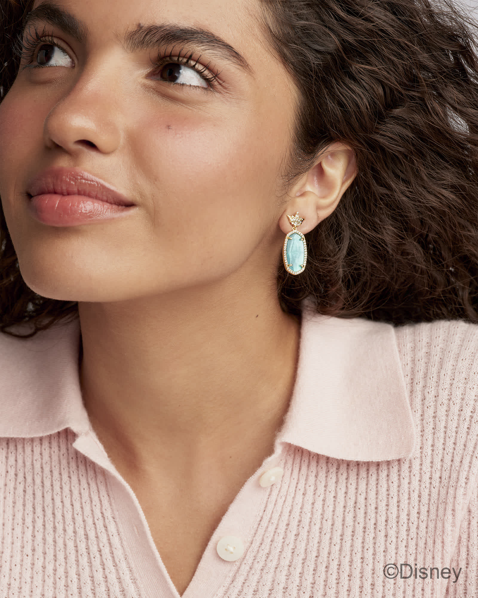 Destined to be the crown of your collection, meet the Disney | Kendra Scott Dana Princess Gold Drop Earrings. With a sparkling crown stud, statement-making signature drop silhouette, and Disney Princess-inspired materials, these regal earrings are ready to make you the star of your story.