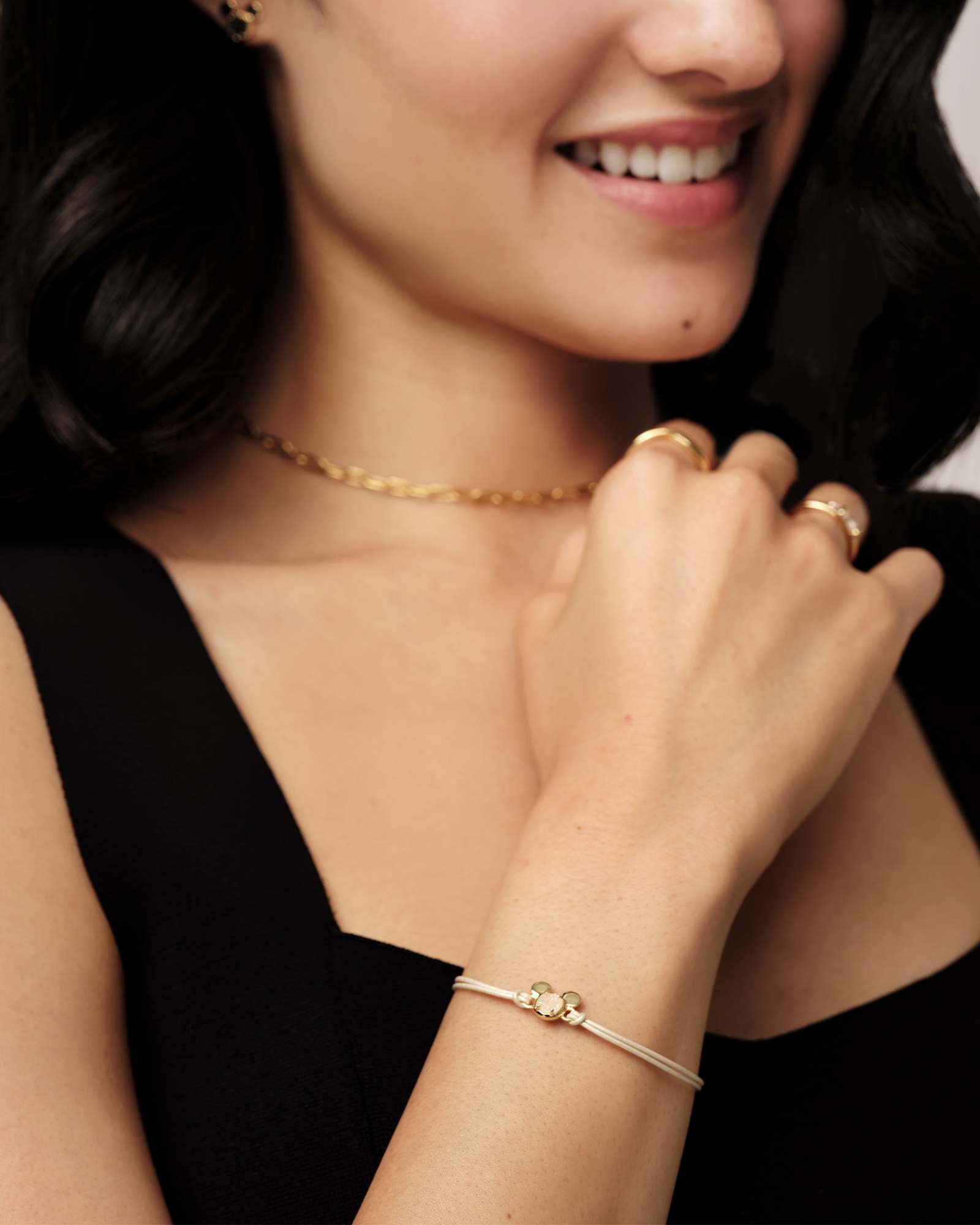 The Disney | Kendra Scott Gold Mickey Mouse Corded Bracelet in Iridescent Drusy is the fun-loving bracelet you can match with all your pals. The Kendra Scott signature iridescent drusy makes Disneyās Mickey Mouse shine brighter than ever before, and its adjustable closure means it will fit anyoneās wrist. Whether youāre a devout Disney fan or just looking to add some charm to your stack, this bracelet is the sweet staple you wonāt want to take off.