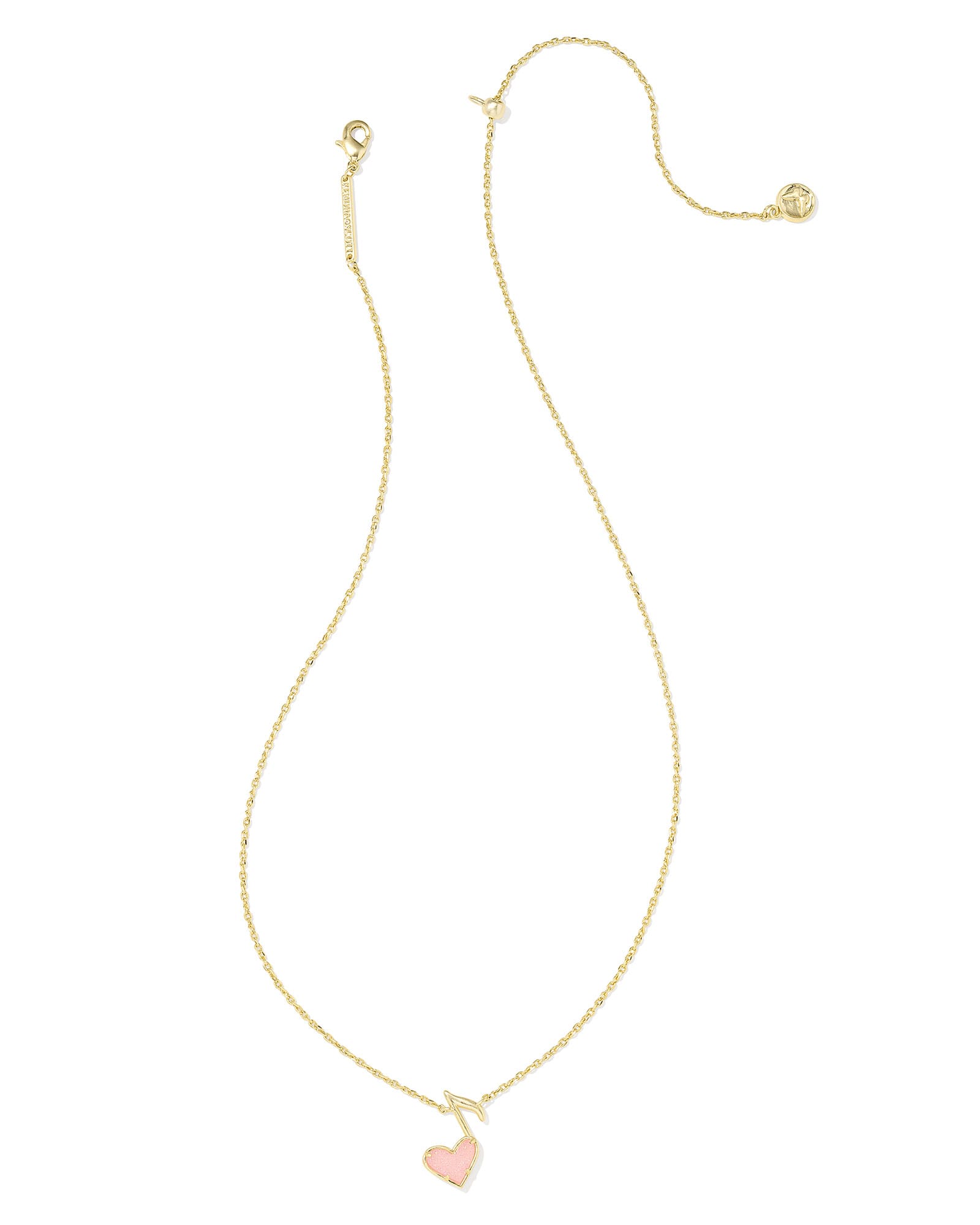 Dolly Parton x Kendra Scott Gold Ari Heart Music Note Short Pendant Necklace in Light Pink Drusy