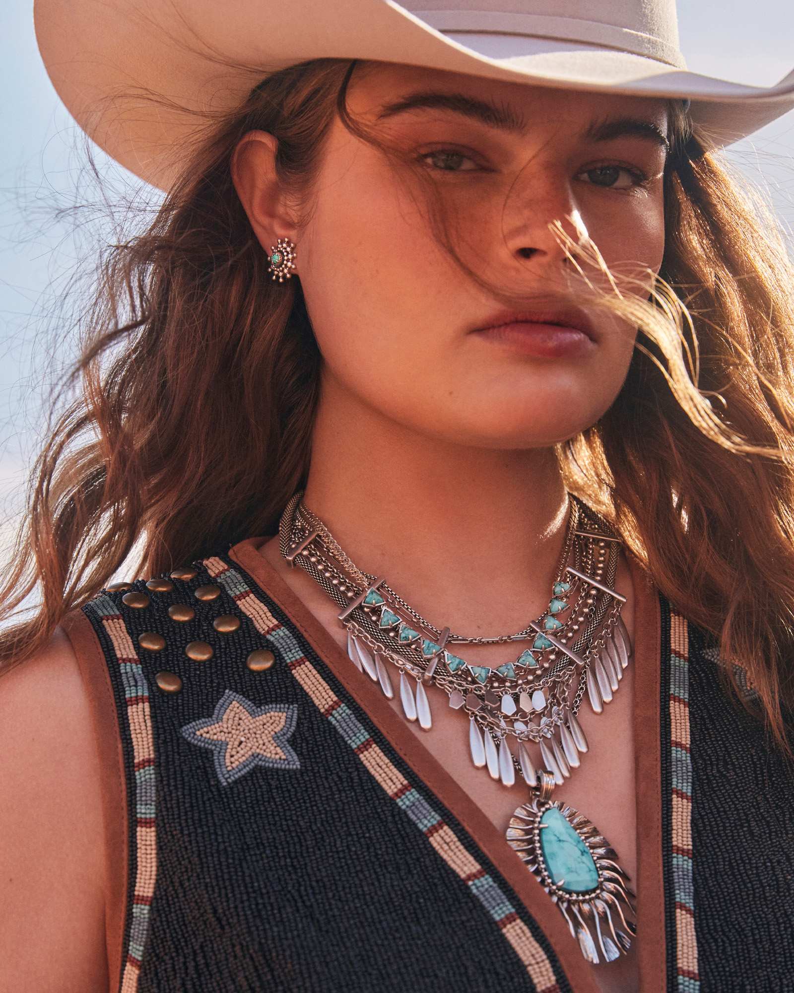 These earrings are part of Yellow Rose by Kendra Scottāa brand that celebrates ranch life with Kendra Scott staples alongside select curated jewelry pieces and accessories.