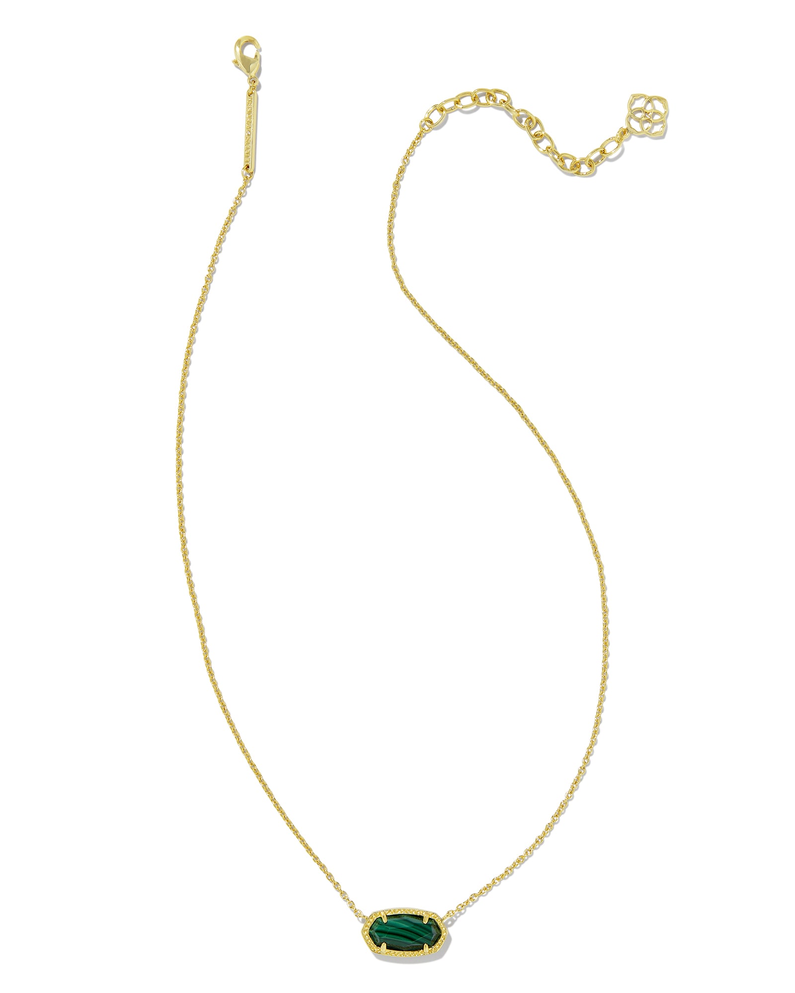 A dainty stone and delicate metallic chain combine to create the Elisa Gold Pendant Necklace in Green Malachite, your new favorite wear-anywhere accessory. This pendant necklace pairs with any ensemble for extra class and style. Make the Elisa Pendant Necklace a staple in your wardrobe and you won’t be disappointed.