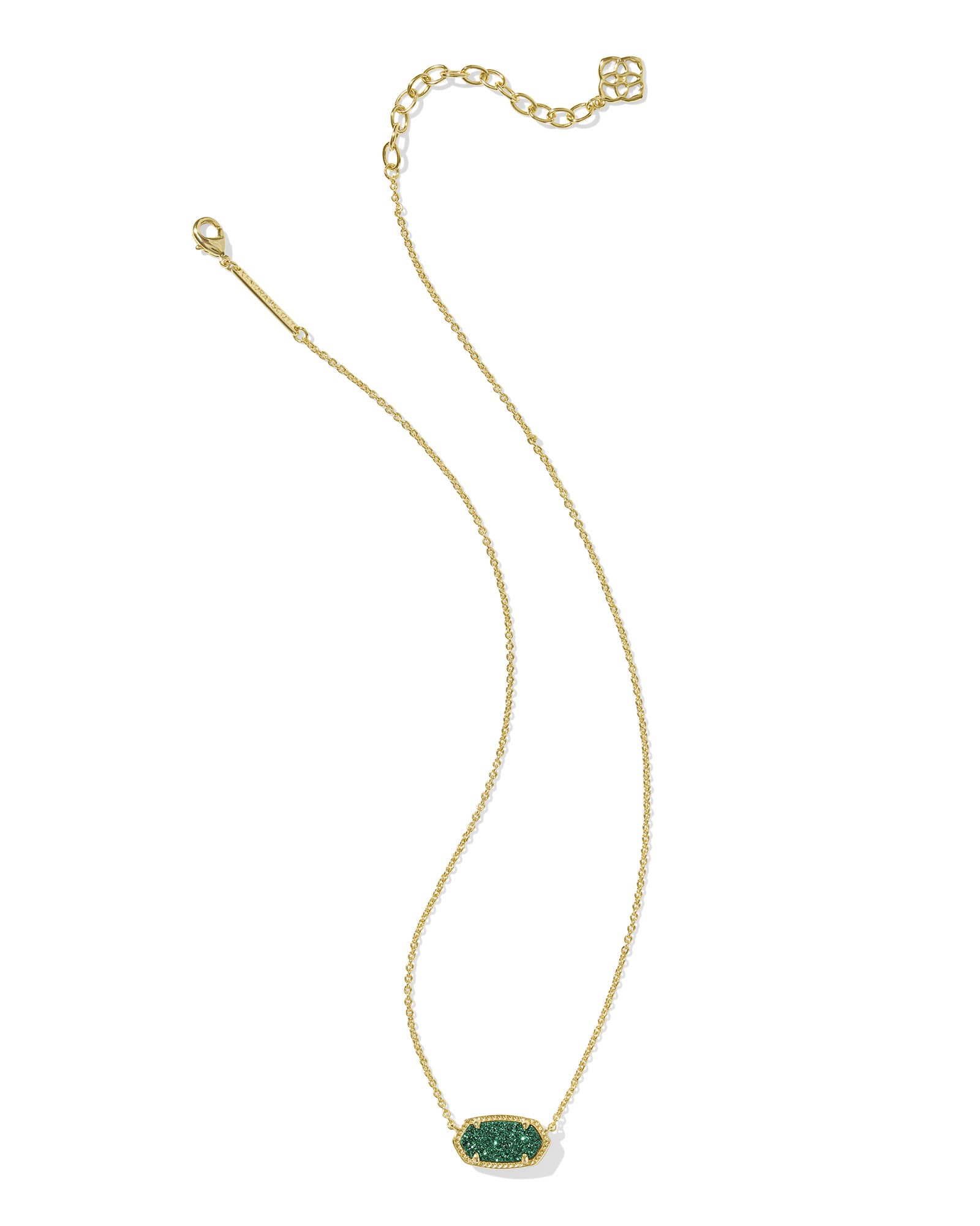 Elisa Gold Short Pendant Necklace in Emerald Drusy