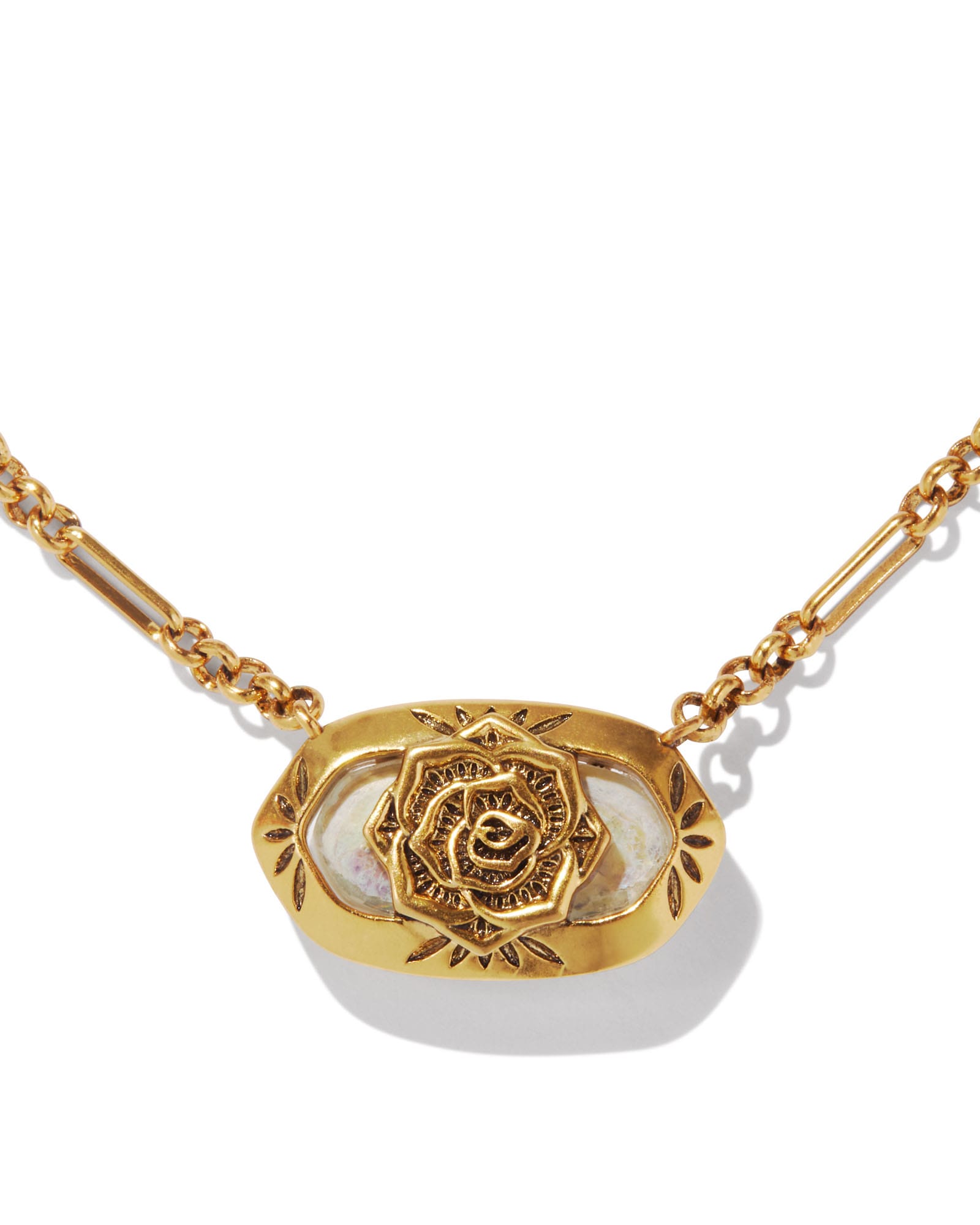 Elisa Vintage Gold Etch Frame Short Pendant Necklace in Iridescent Abalone