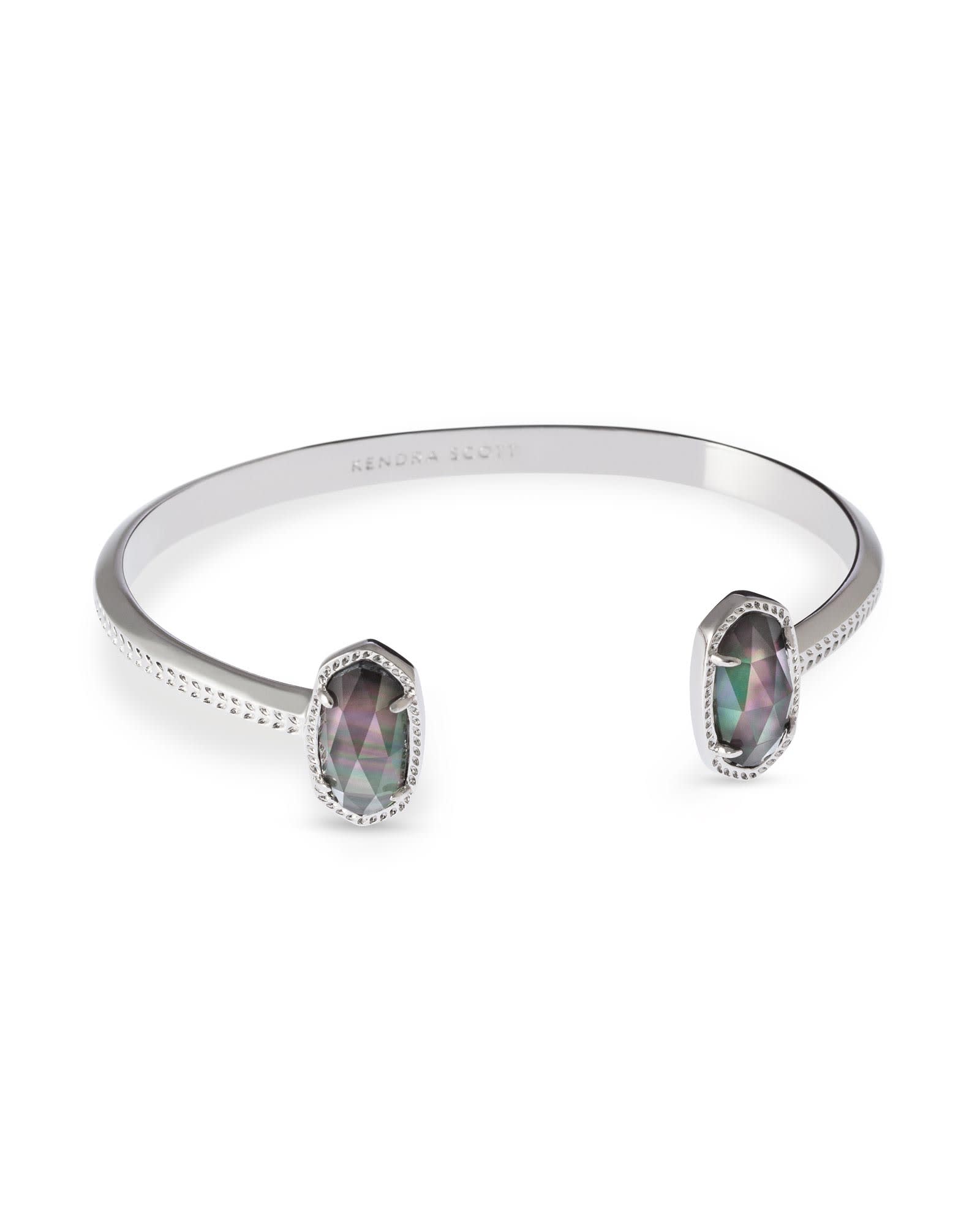 A dainty pinch cuff bookended with our signature oval stones, the Elton Silver Cuff Bracelet in Black Mother-of-Pearl is a stack staple. This beautifully designed gold cuff bracelet is guaranteed to turn heads every time you wear it. No matter the size of your wrist, our Elton Cuff Bracelet is sure to fit you and your style.