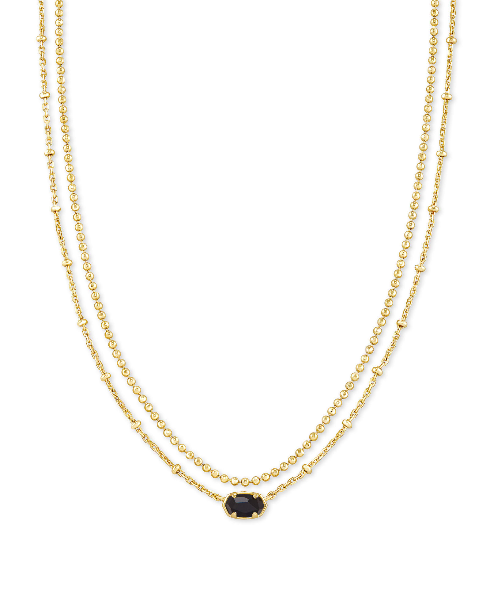 Pull off an effortlessly layered look in the Emilie Gold Multi Strand Necklace in Black Obsidian. Mini versions of our most iconic silhouettes and delicate Chains put us in the freshly-showered-sun-soaked-warm-kinda mood.