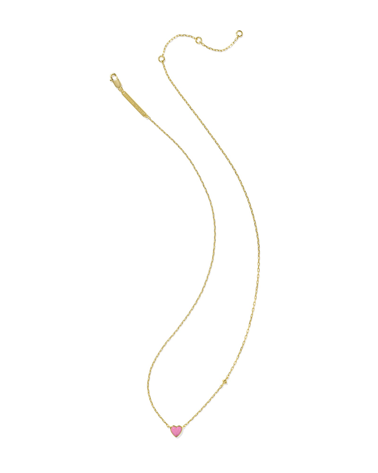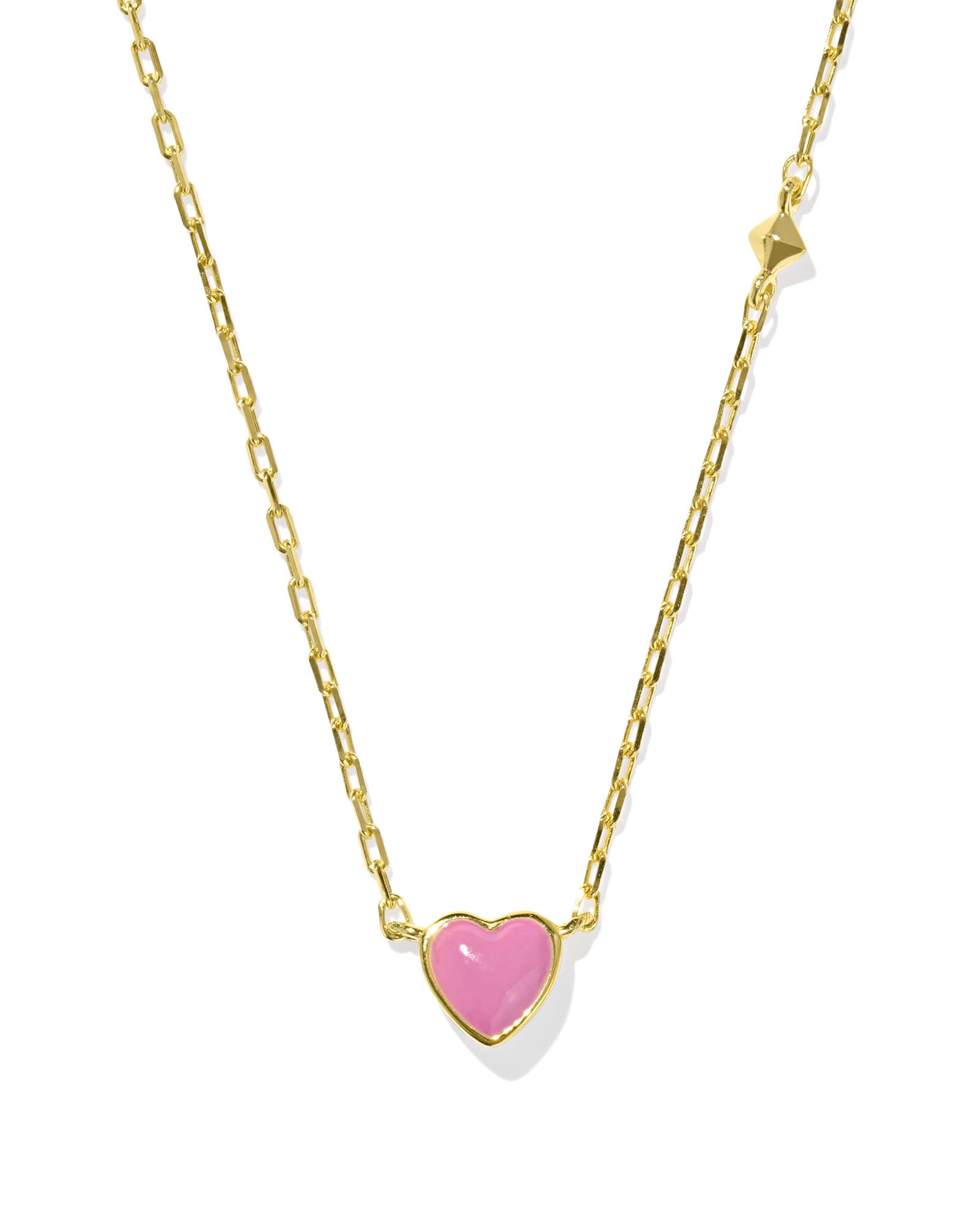 Enamel 18k Gold Vermeil Heart Pendant Necklace in Pink Enamel
