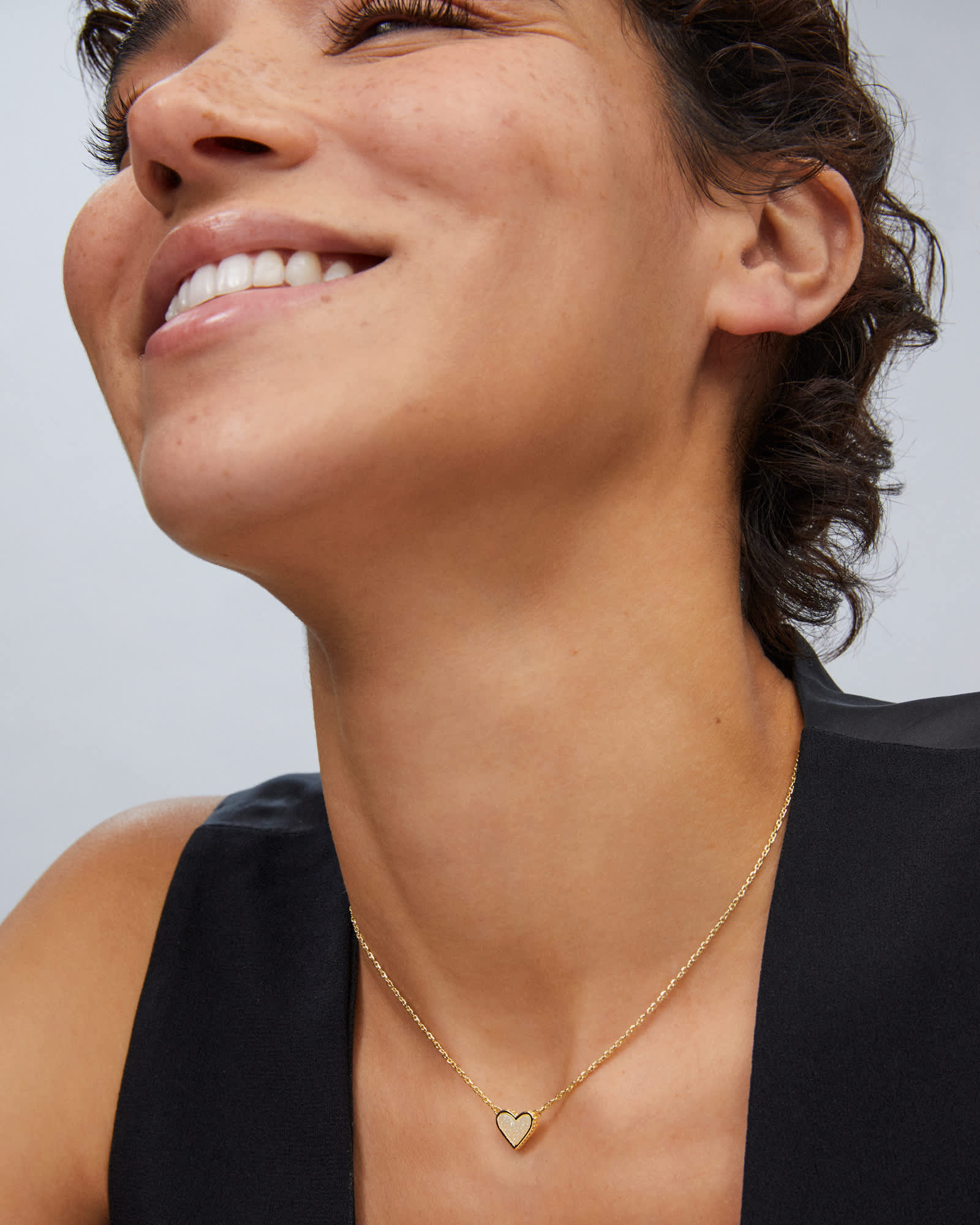 The bestseller you know and love, now in a flirty new design! The Framed Ari Heart Gold Short Pendant Necklace in Iridescent Drusy features a smaller heart shape in a sleek metal frame embellished with our signature hoofprint detailing. Dainty and oh-so-sweet, this pendant will add a touch of romance to your necklace stack.