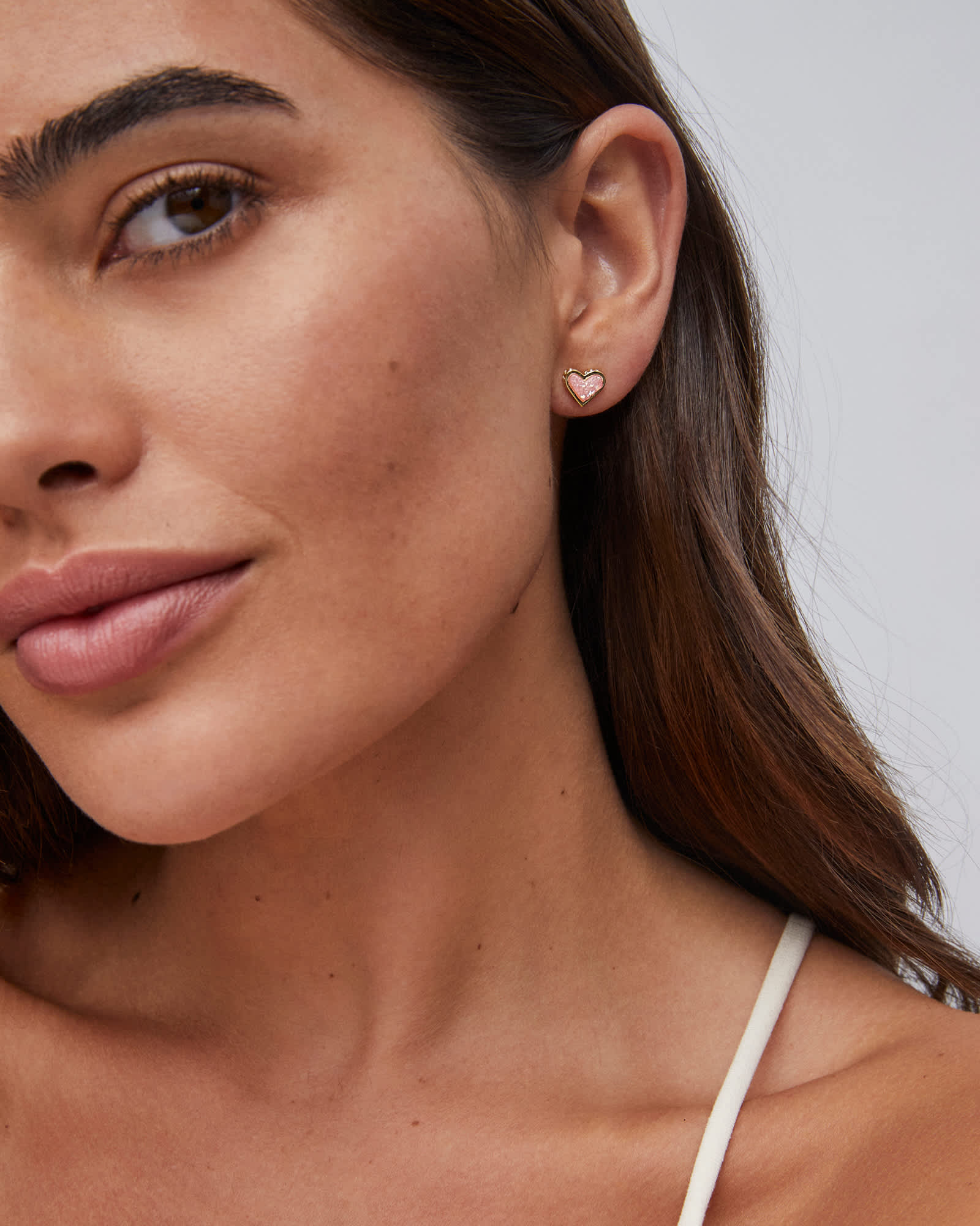 Framed Ari Heart Gold Stud Earrings in Azalea Illusion