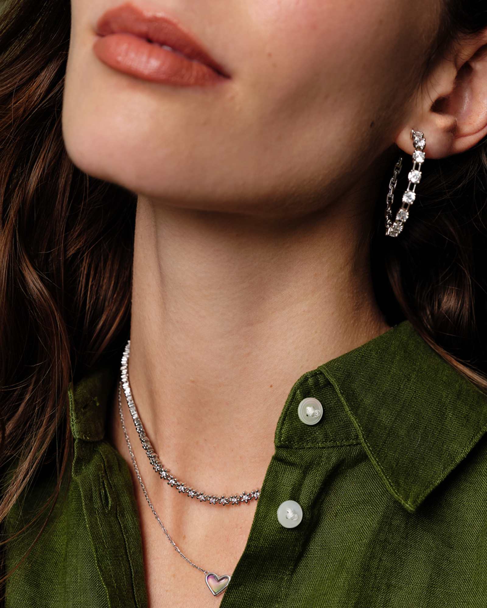 The bestseller you know and love, now in a flirty new design! The Framed Ari Heart Silver Short Pendant Necklace in Mood Stone features a smaller heart shape in a sleek metal frame embellished with our signature hoofprint detailing. Dainty and oh-so-sweet, this pendant will add a touch of romance to your necklace stack.