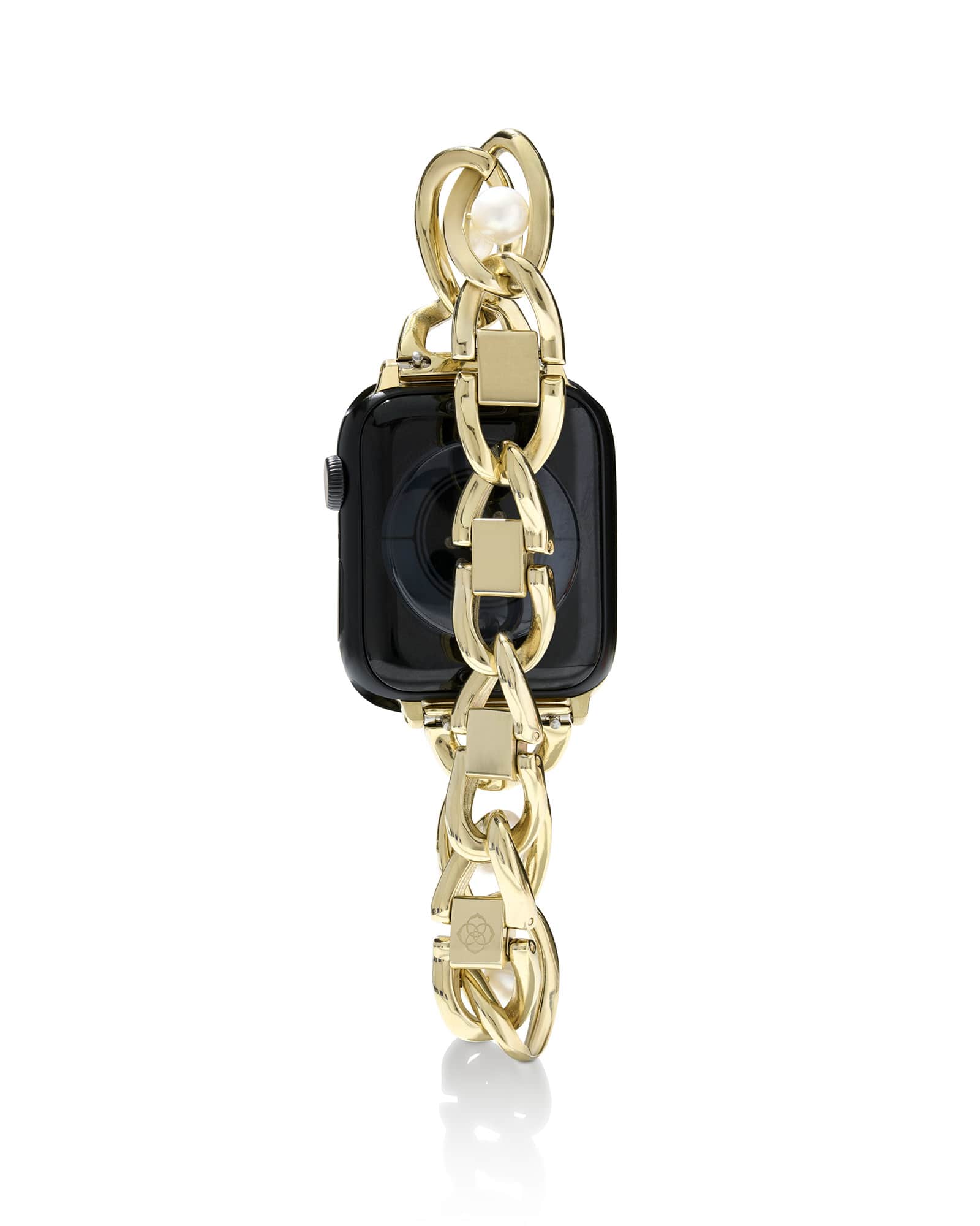 Designed to fit your Apple Watch® and Samsung Galaxy Watch®, the Giselle Gold Tone Stainless Steel Watch Band transforms your smartwatch into a uniquely sophisticated statement that packs bold glamour on its own or pairs perfectly with your favorite bracelets. To switch up your bands, simply press down on the easy release mechanism and then align each new band to the pinholes on either side of the watch.
