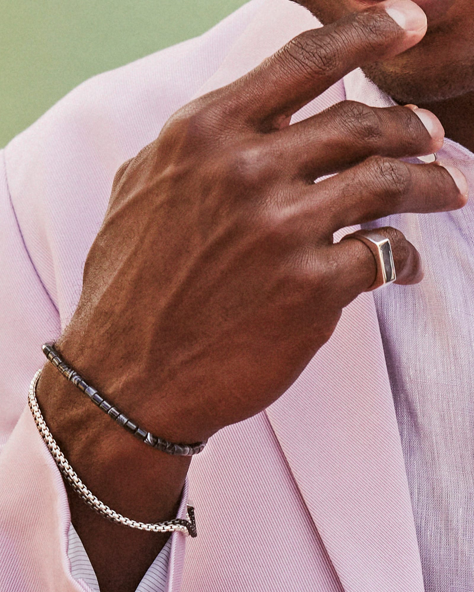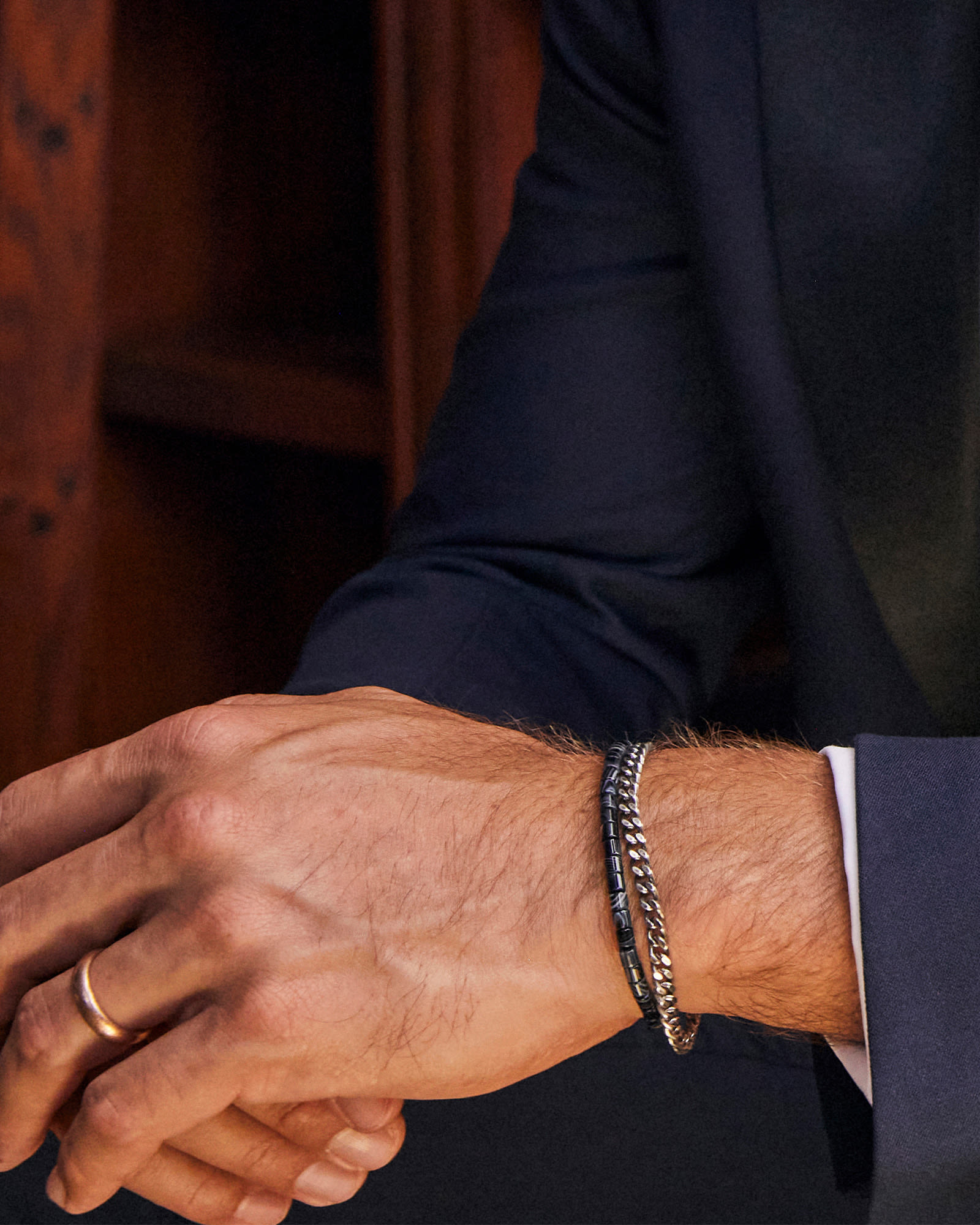 A mix of detailed stone beading and durable paracord, the Grey Oxidized Sterling Silver Beaded Bracelet in Black Banded Agate is an effortless way to upgrade your everyday wardrobe. An adjustable closure makes it easy to find the right fit, and Sterling Silver equates to low-maintenance style you can wear during work, play, and everything in between.