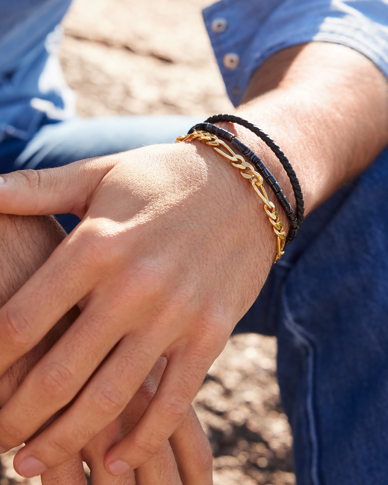 Grey Oxidized Sterling Silver Corded Bracelet in Black Banded Agate