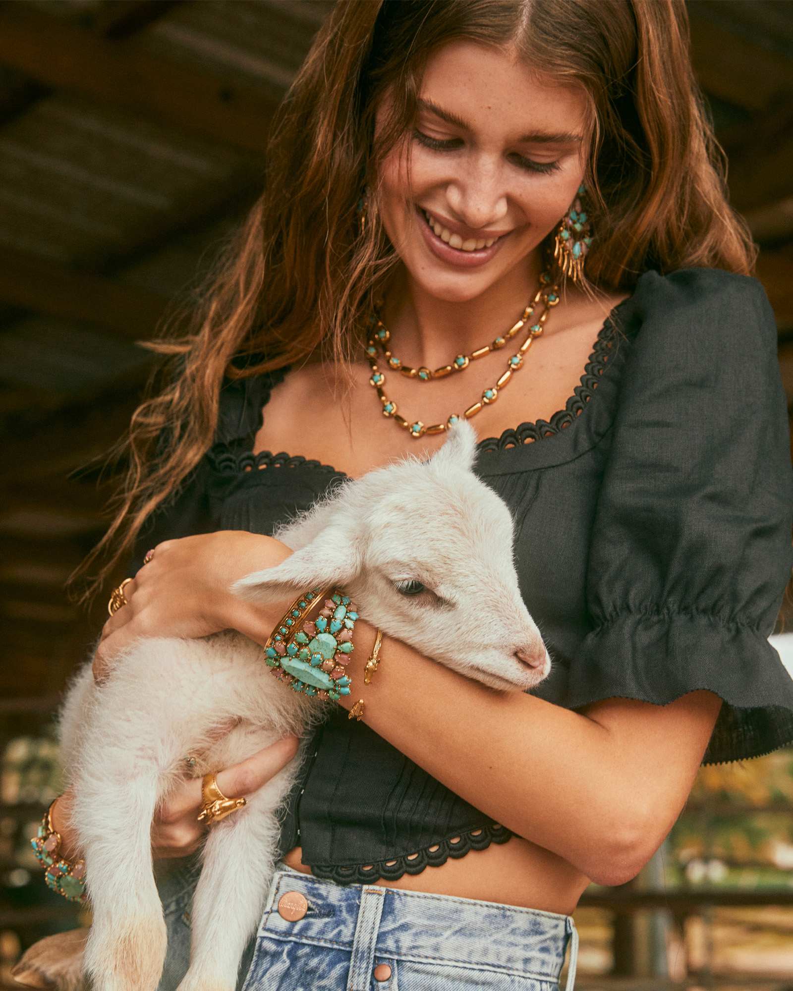 This necklace is a part of Yellow Rose by Kendra Scottāa brand that celebrates ranch life with Kendra Scott staples alongside select curated jewelry pieces and accessories.