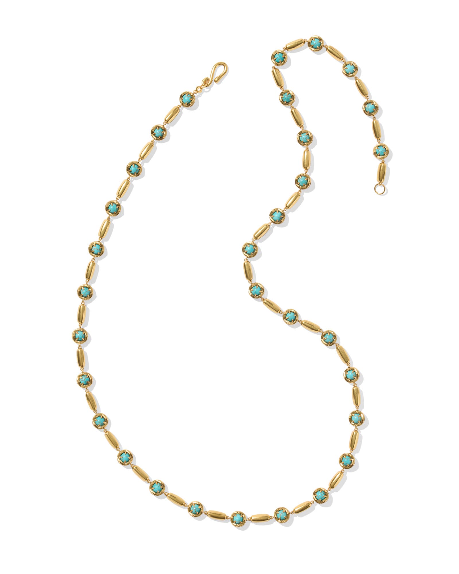 Ida Vintage Gold Long Strand Necklace in Variegated Turquoise Magnesite