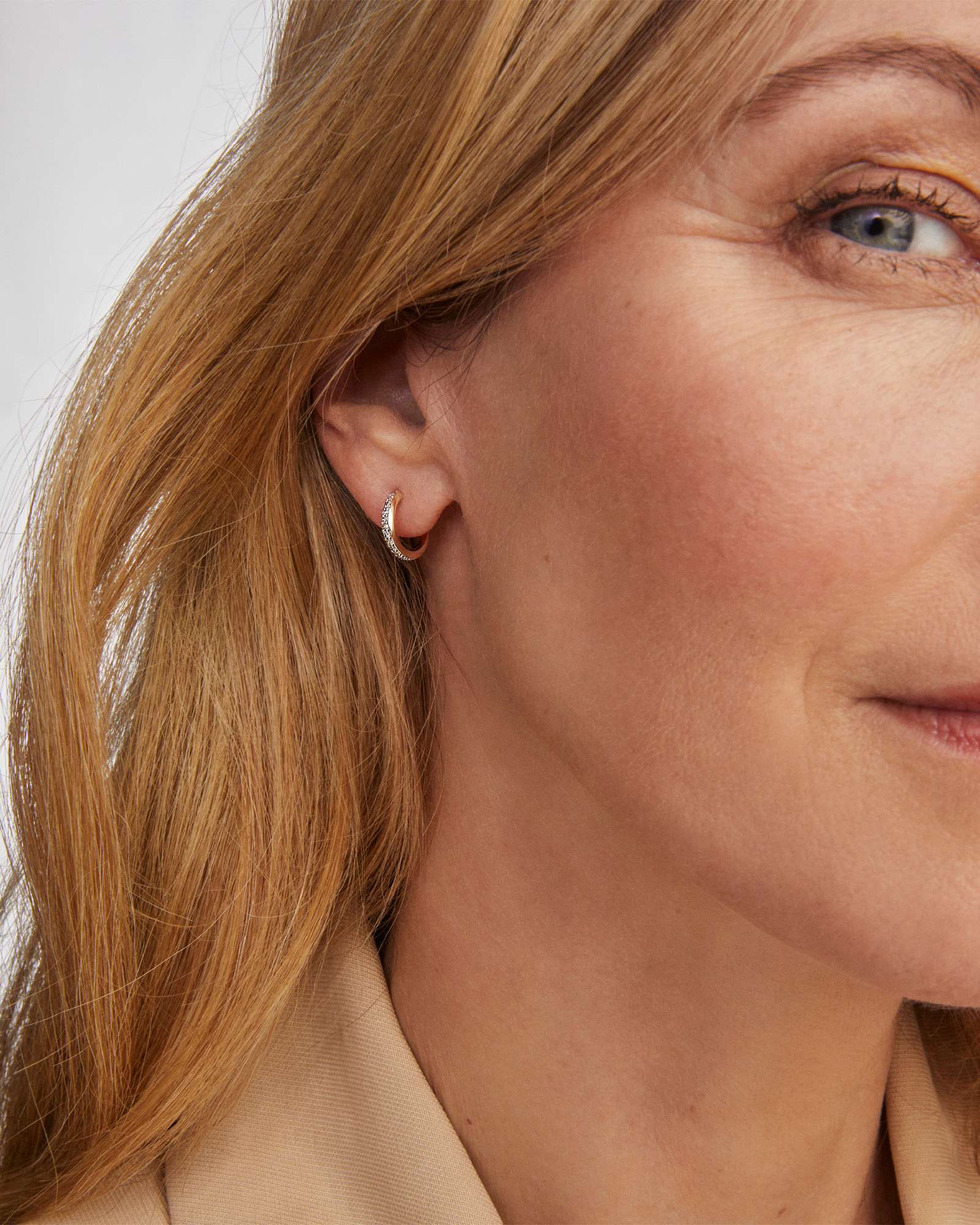 The Ines 14k Yellow Gold Pave Huggie Earrings in White Diamond are a luxe essential with a major payoff. A subtle yet striking combination of on-trend design and elevated materials, these diamond-dusted huggies will take your looks to new levels, effortlessly.