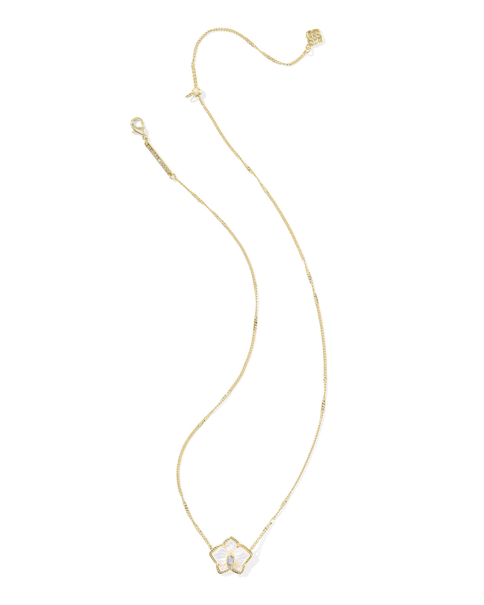 Inspired by the beauty of orchids and finished with signature KS touches, the Joelle Orchid Gold Short Pendant Necklace is a tribute to one of natureās rarest flowers. With beautiful carved mother-of-pearl and a sweet Mini Elisa detail at its center, this pendant adds a bit of elegance to any outfit.