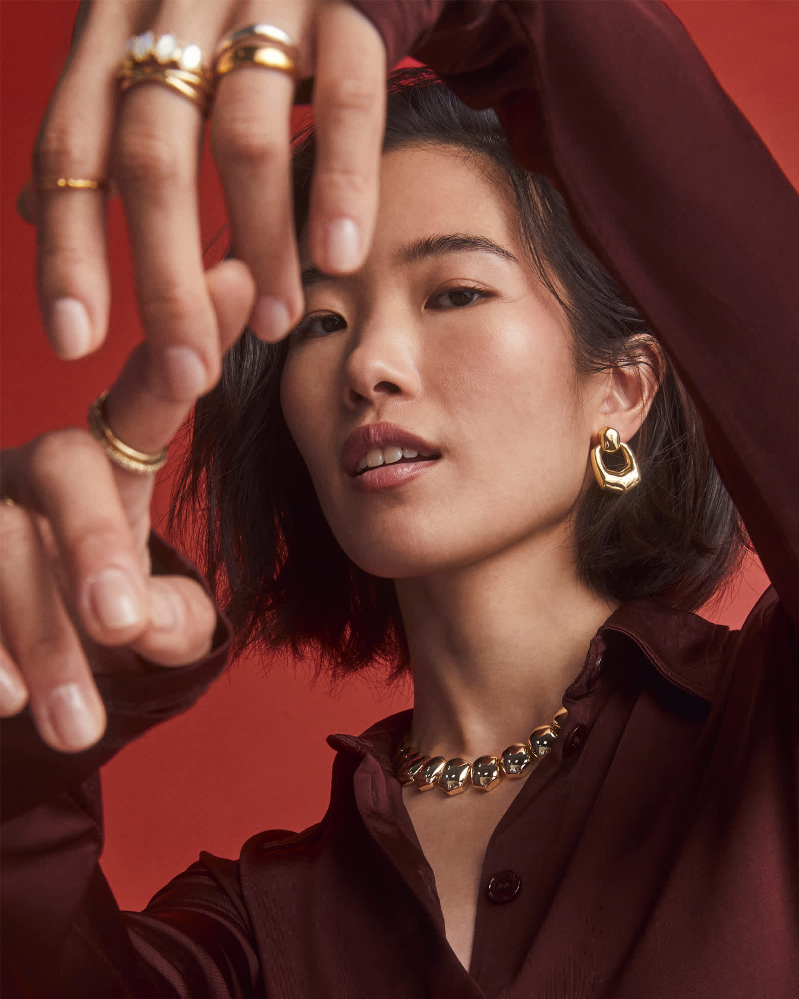 This all-metal moment is a maximalist must have. Inspired by our custom Daphne stone silhouette, the Kaitlin Gold Statement Necklace truly delivers when it comes to high shine. Stunning enough to be worn alone or with layers as a focal point, this piece is sure to become a staple statement in your collection.