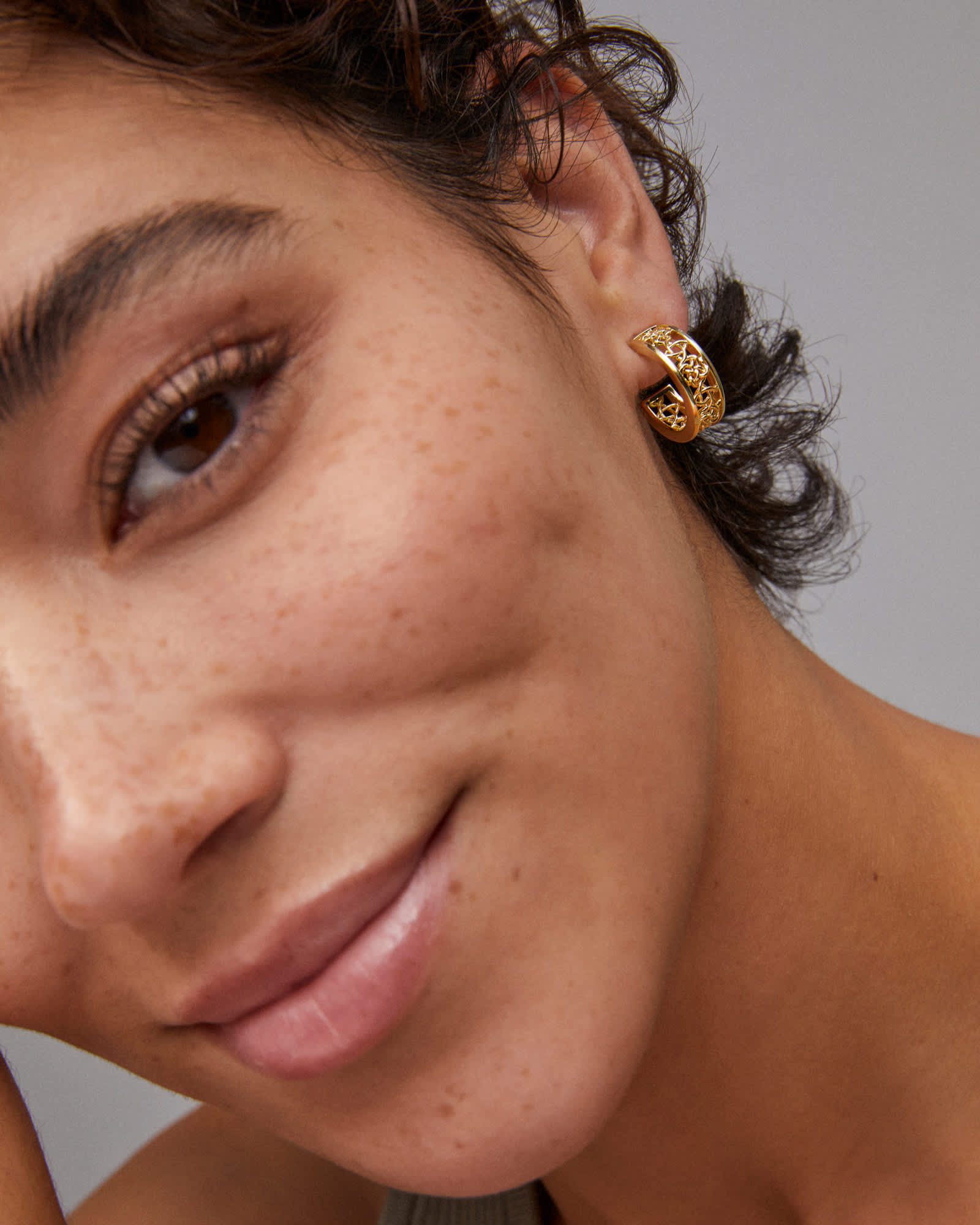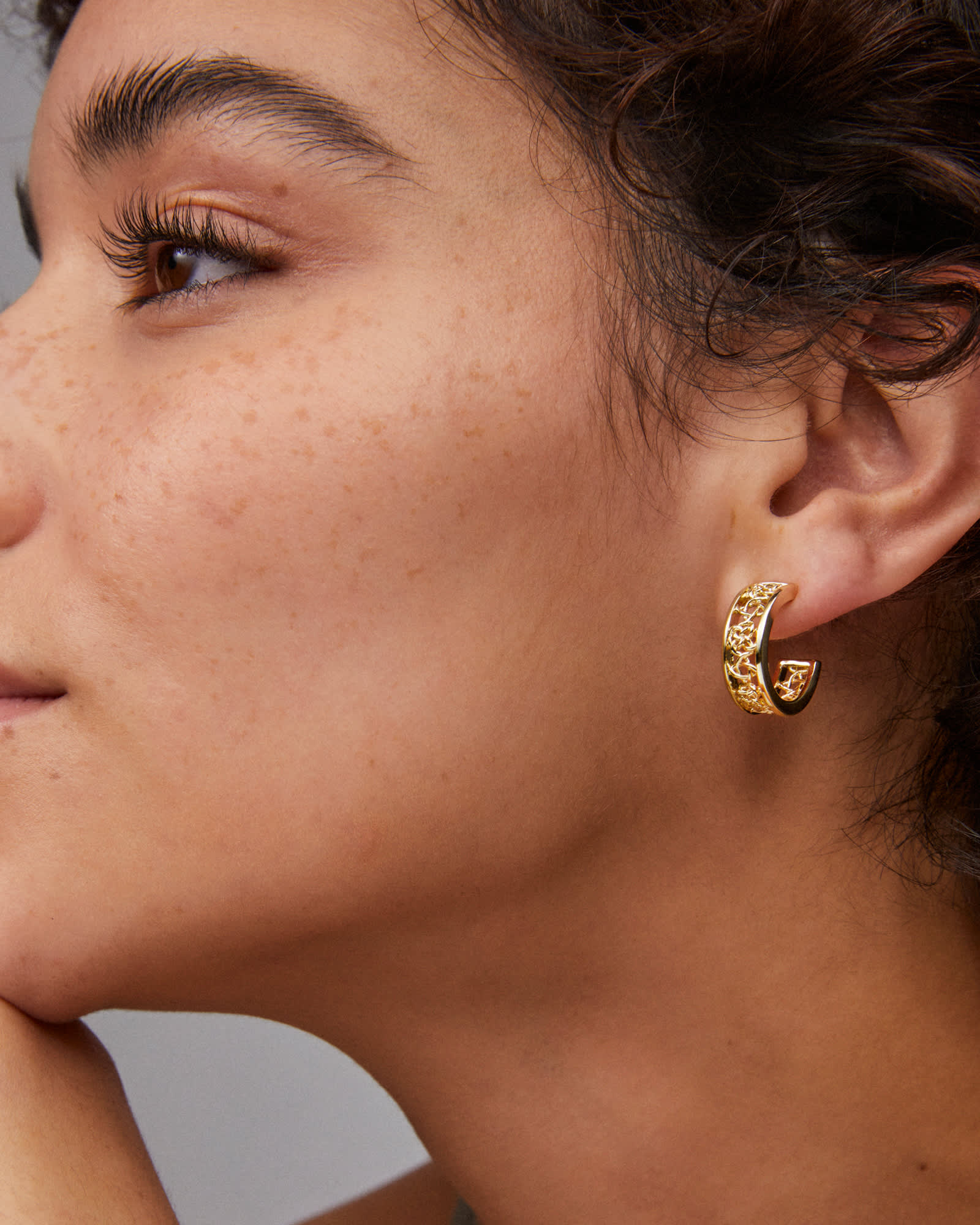 Our signature filigree gets a botanical, vine-like update in the Kelly Huggie Earrings in Gold. Bringing a dynamic, textured look to every wear, these one-of-a-kind earrings can be styled solo or paired with other studs and hoops for a metallic edge.