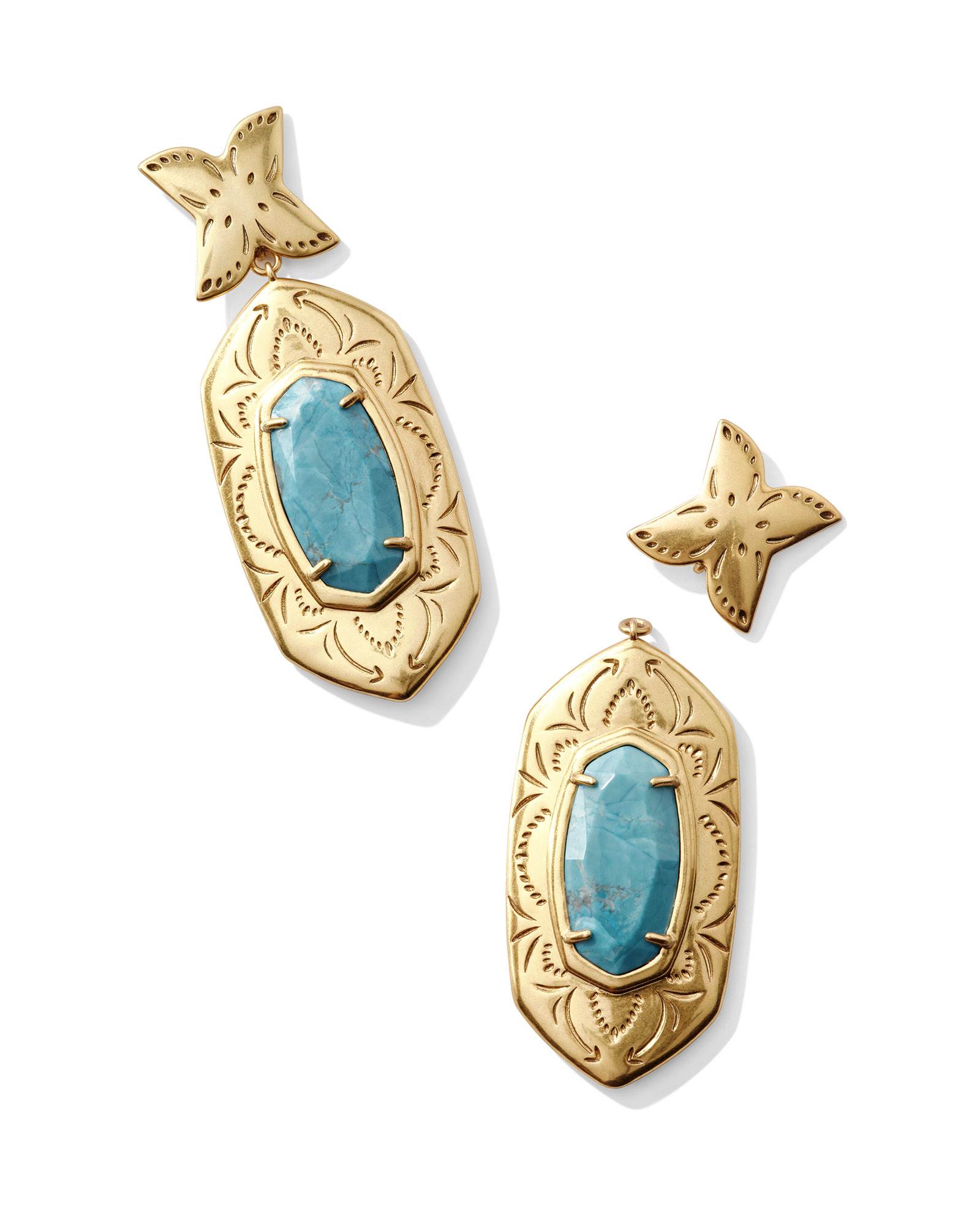 With their etched detailing, vintage-inspired metal, and oversized frame, the Keziah Vintage Gold Statement Earrings in Variegated Dark Teal Magnesite are bound to make you the topic of conversation. Whether youāre accessorizing a more gussied-up look or just wanting to add some flair to your day-to-day fits, these earrings make a one-of-a-kind statement. These earrings are a part of Yellow Rose by Kendra Scottāa brand that celebrates ranch life with Kendra Scott staples alongside select curated jewelry pieces and accessories.