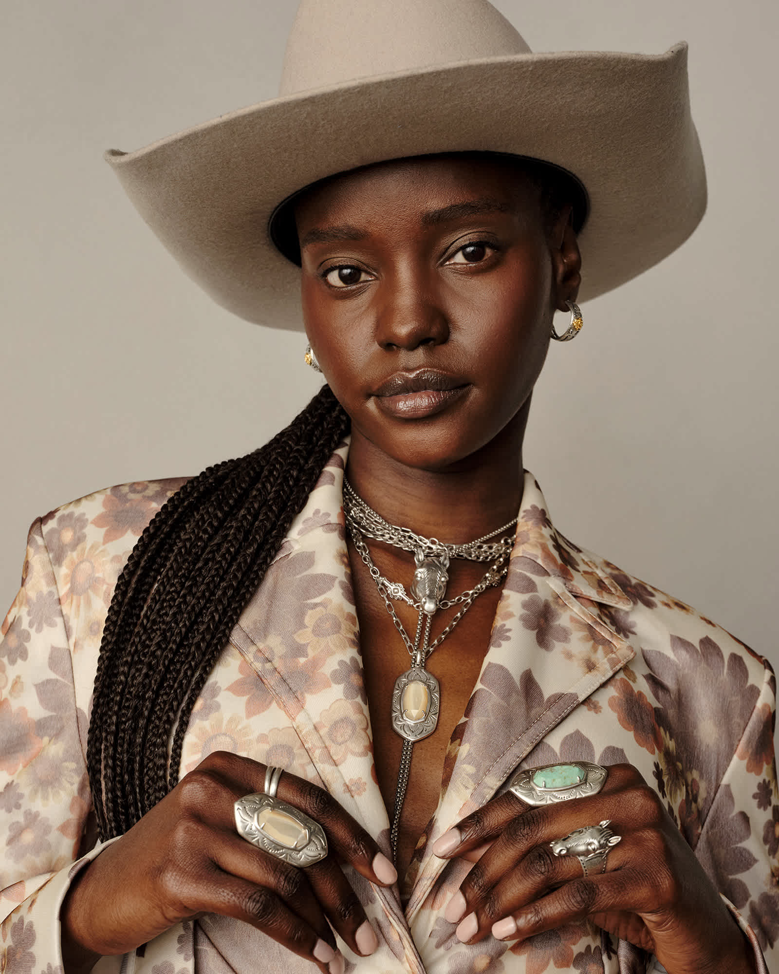 You’ll have all your bases covered (and fits accessorized) with the Keziah Vintage Silver Strand Necklace in Natural Mother-of-Pearl. A stone pendant in our signature shape steals the spotlight with an intricately etched frame, while two vintage-inspired metal chains add depth and texture to this multi strand stunner. This three-in-one style is also adjustable, so you can change the length of your pre-layered look to your liking. This necklace is a part of Yellow Rose by Kendra Scott—a brand that celebrates ranch life with Kendra Scott staples alongside select curated jewelry pieces and accessories.