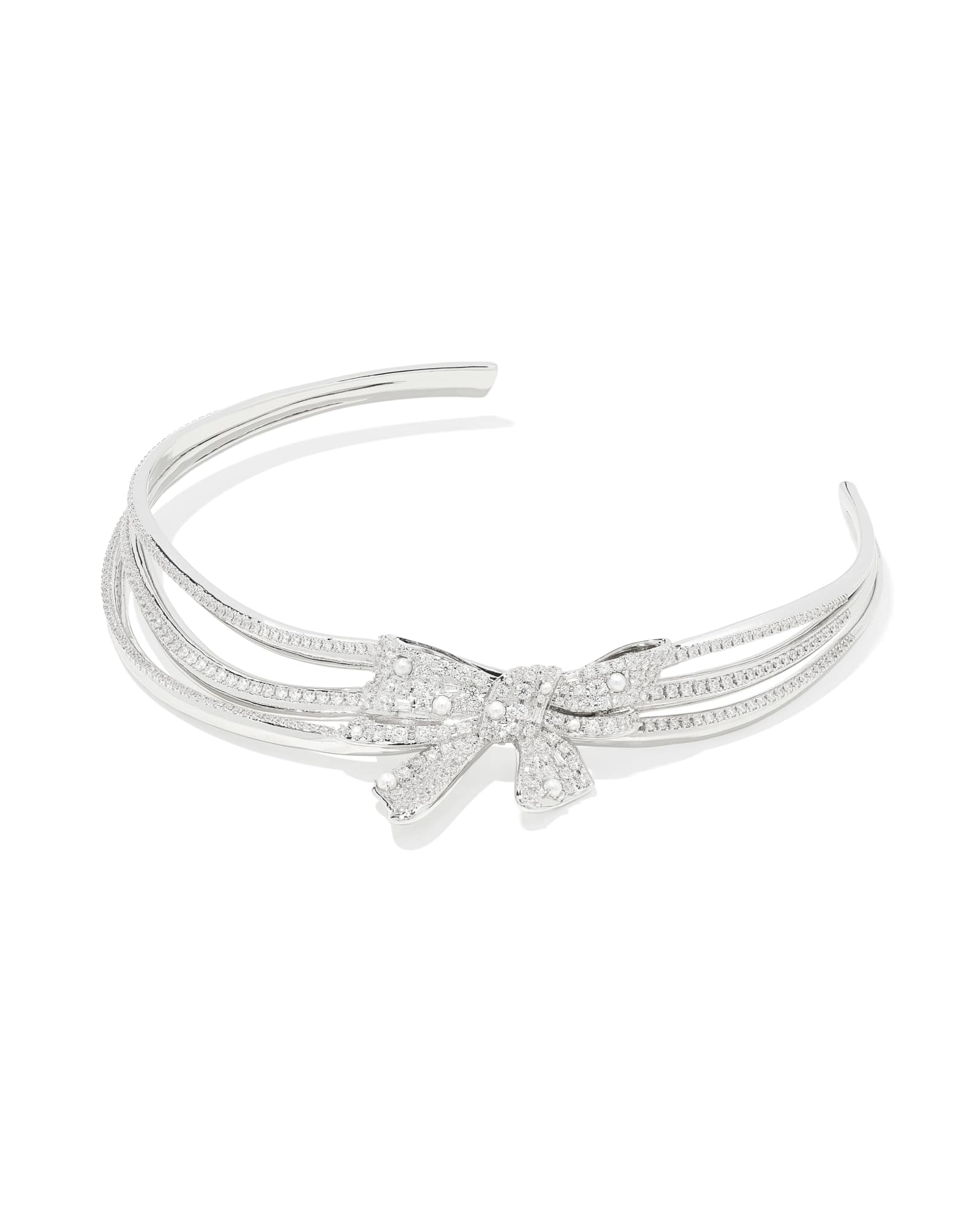 Looking for something luxe? The Krista Silver Bow Statement Necklace in White Mix is a total showstopper. Crafted with a stunning combination of crystals and cultured freshwater pearls, this statement necklace features an oversized, asymmetrical bow motif thatās as sweet as it is chic.
