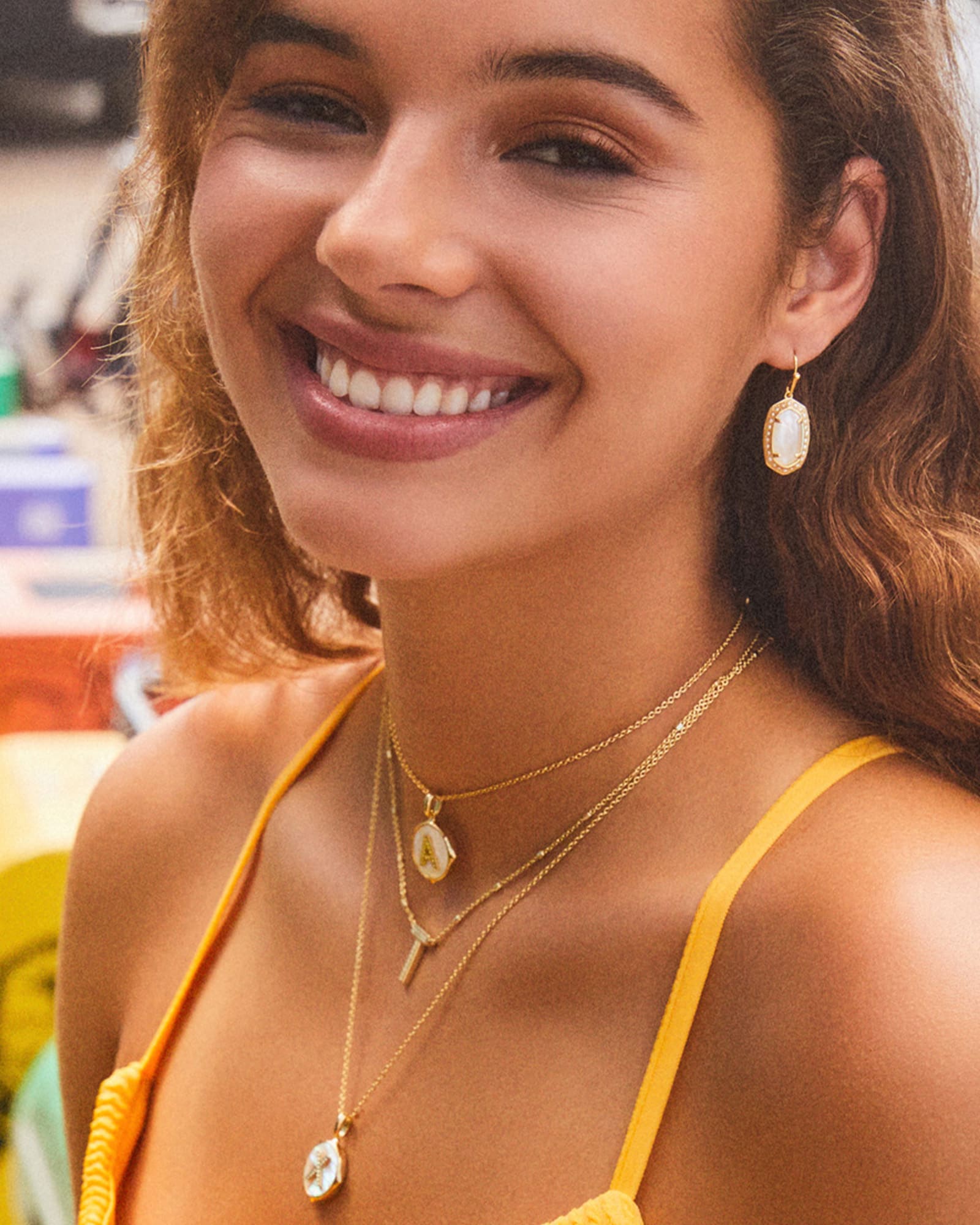 The Letter A Gold Disc Pendant Necklace in Iridescent Abalone is a must-have layer. Featuring a reversible pendant, this versatile necklace is designed to personalize your look and double your styling options.