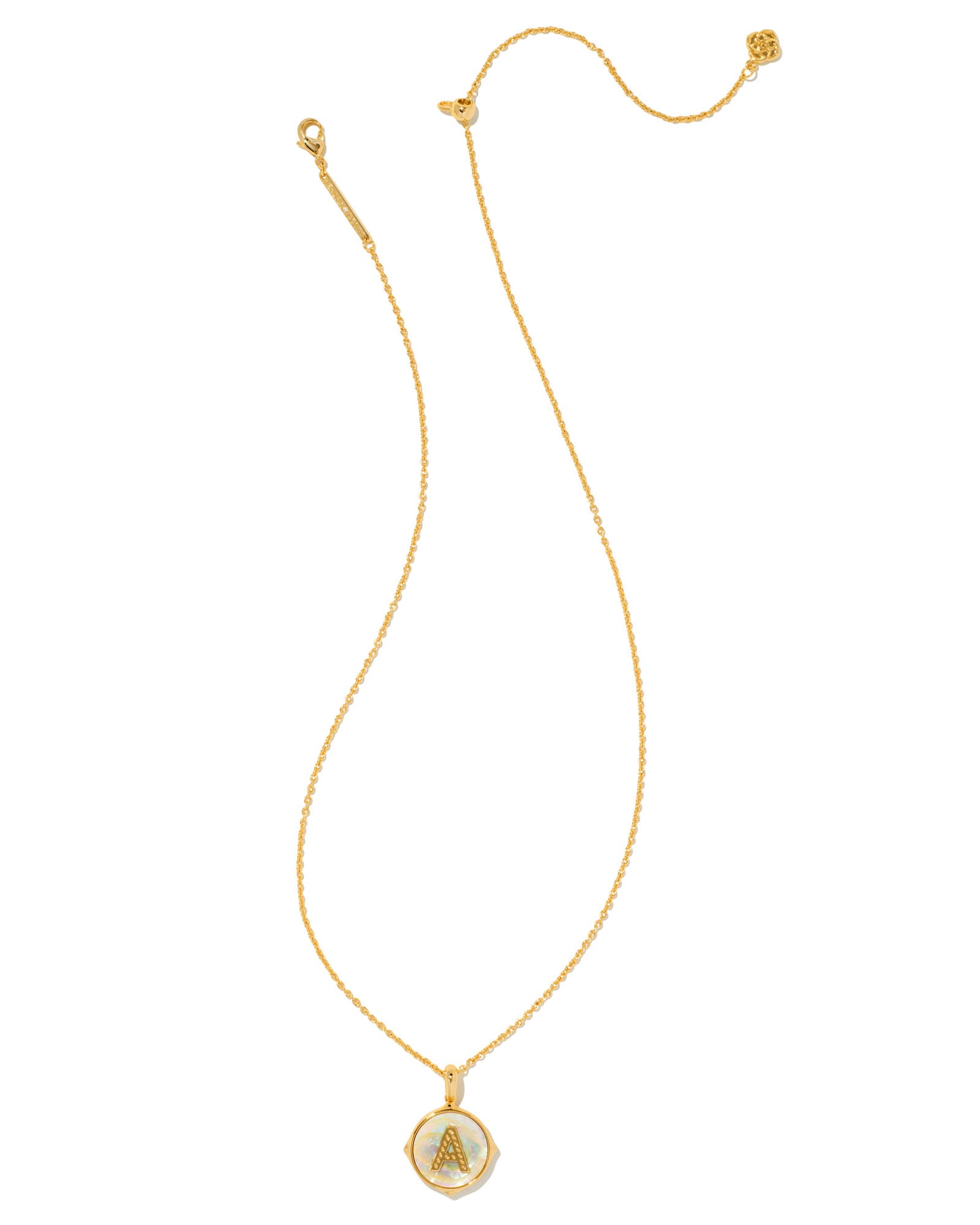 Letter A Gold Disc Reversible Pendant Necklace in Iridescent Abalone