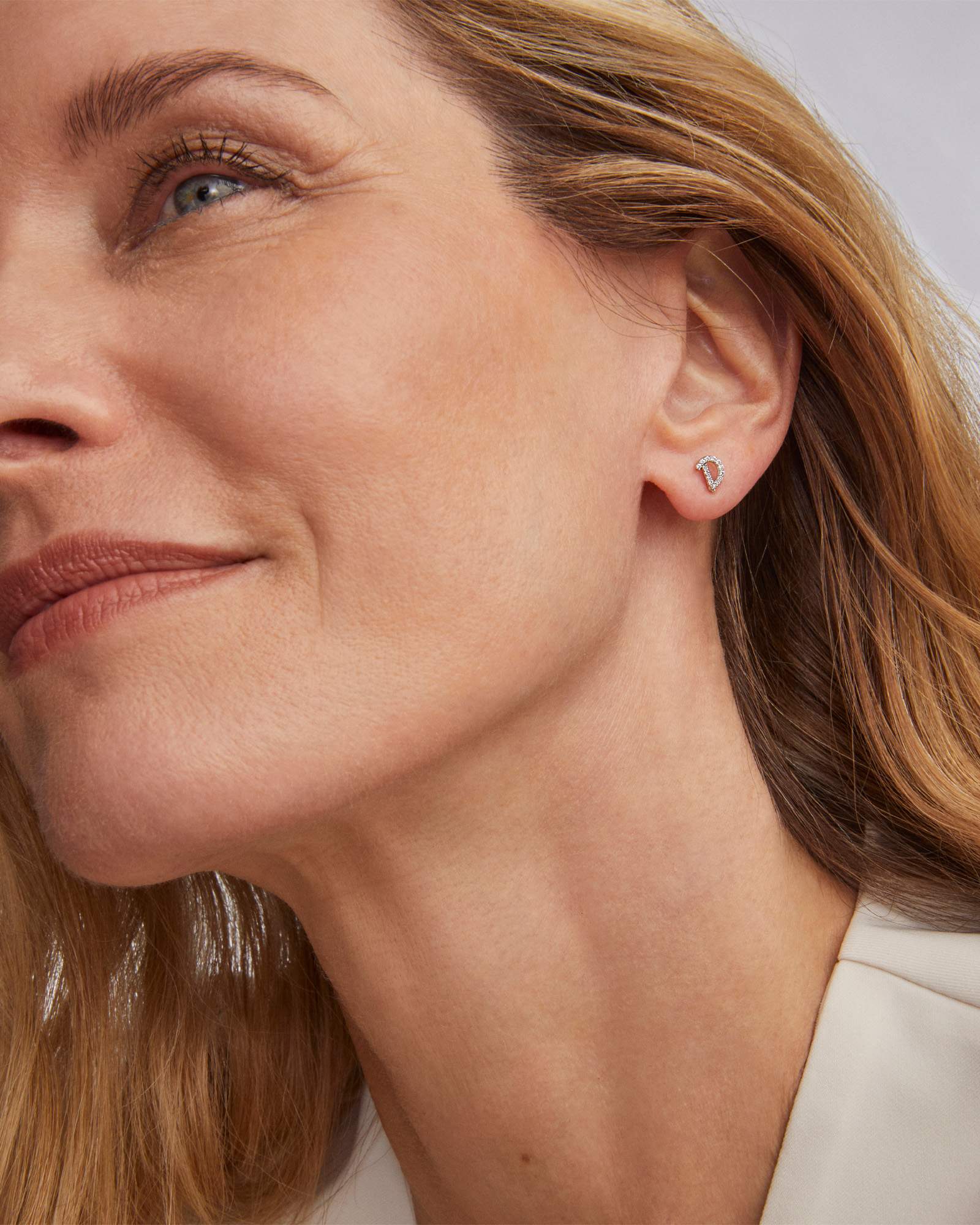 Curate your ear stack with a personal(ized) favorite. Featuring hand placed White Diamonds, the single Letter D 14k Yellow Gold Single Stud Earring is a forever keepsake to personalize your every look.