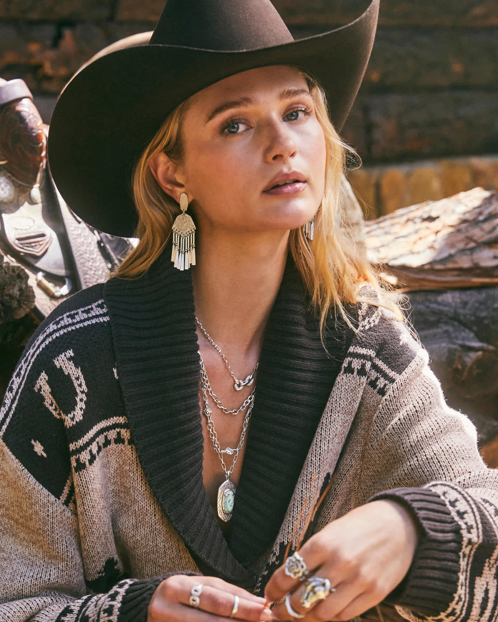 It’s the statement that’ll steal the spotlight. With their dramatic tassel-like silhouette and all-metal design, the Lynne Statement Earrings in Vintage Silver will add tons of movement to every look and spark countless compliments on every occasion. These earrings are a part of Yellow Rose by Kendra Scott—a brand that celebrates ranch life with Kendra Scott staples alongside select curated jewelry pieces and accessories.
