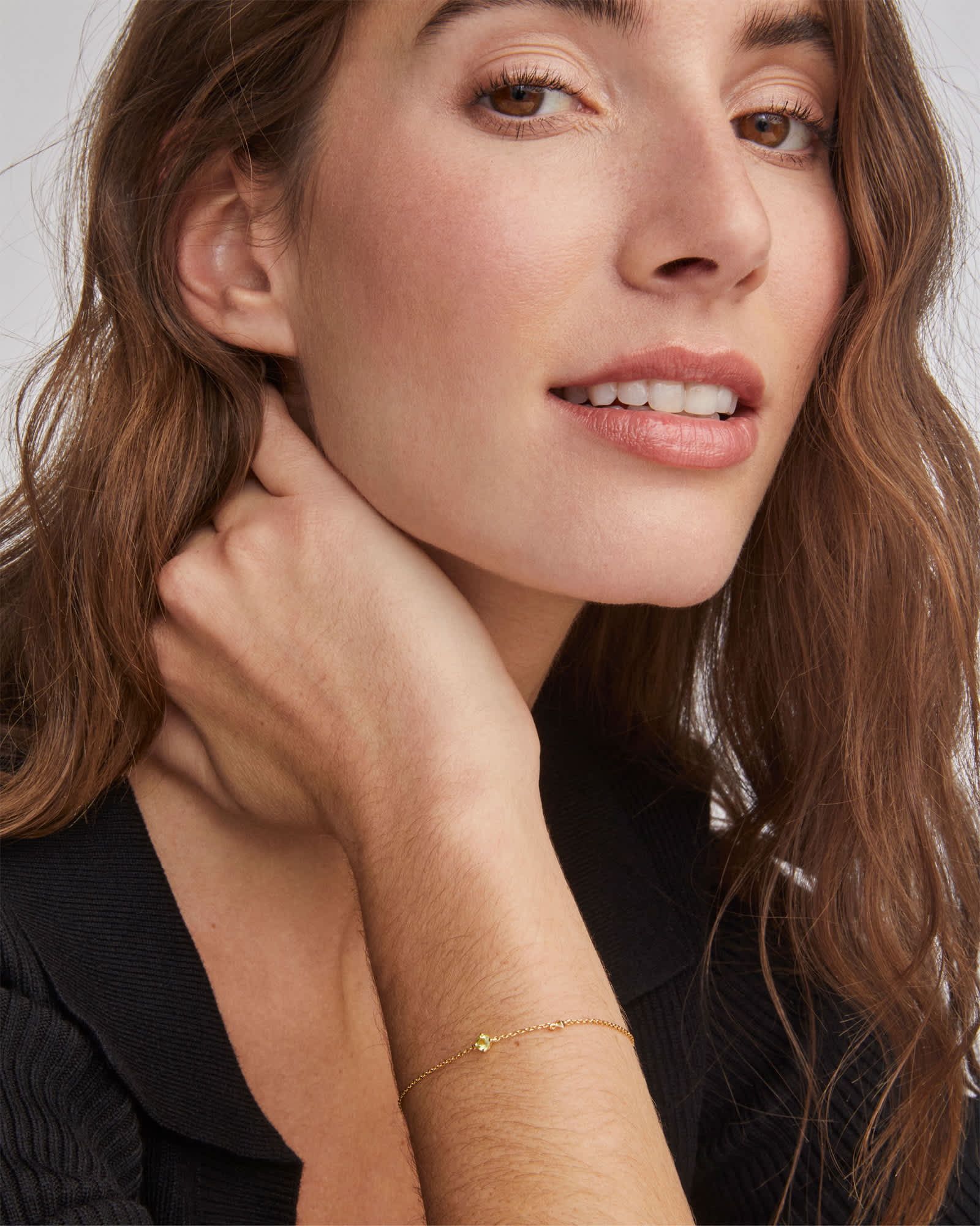 Meet this delicate and dainty layer that’s sure to delight. The Maisie 18k Gold Vermeil Delicate Chain Bracelet in Peridot is our most minimal birthstone style, perfect for personalizing your look with elevated materials. Speaking of personalization, this bracelet features an adjustable closure for a custom fit. Peridot represents August birthdays, inspiring strength, rest, and healing.