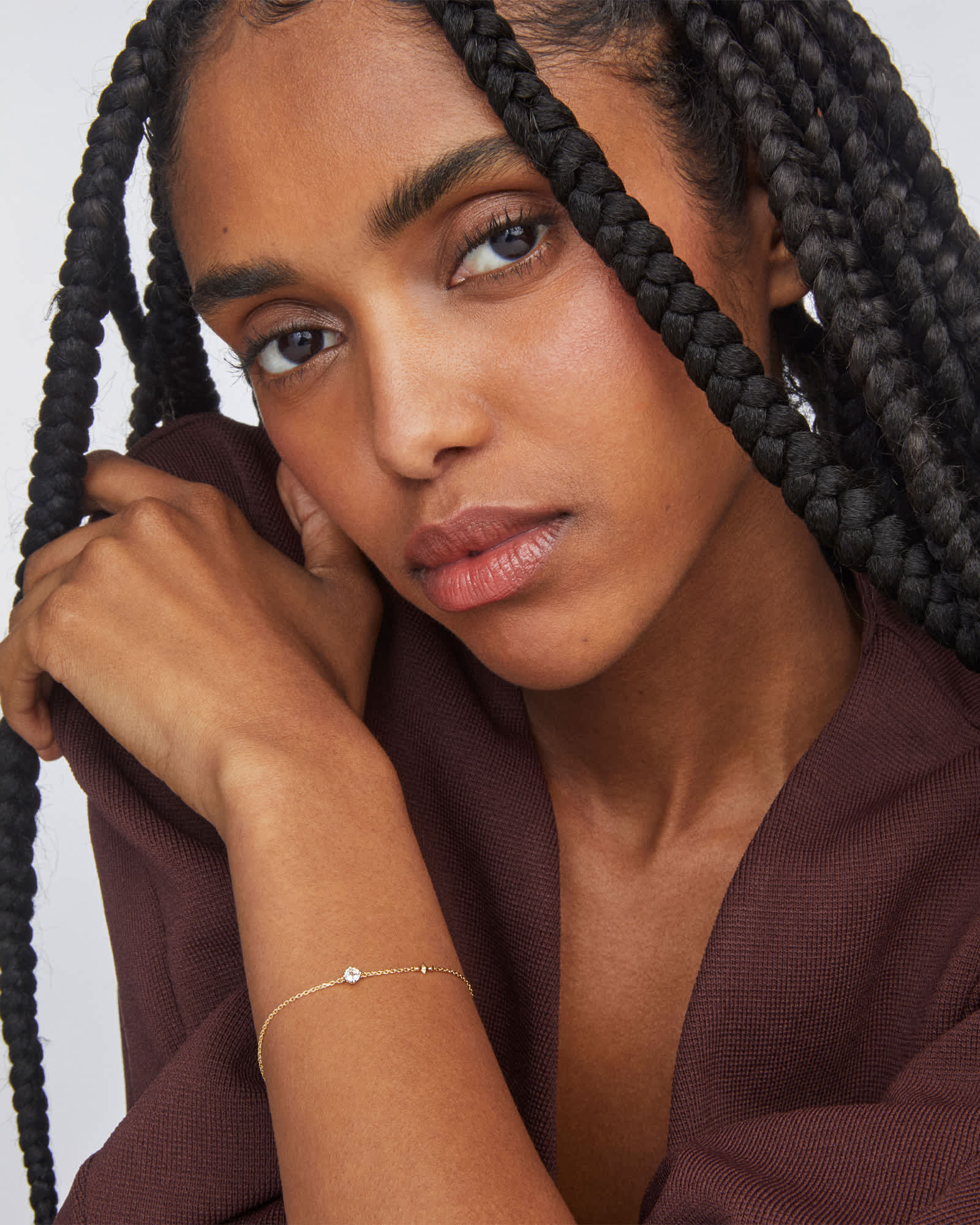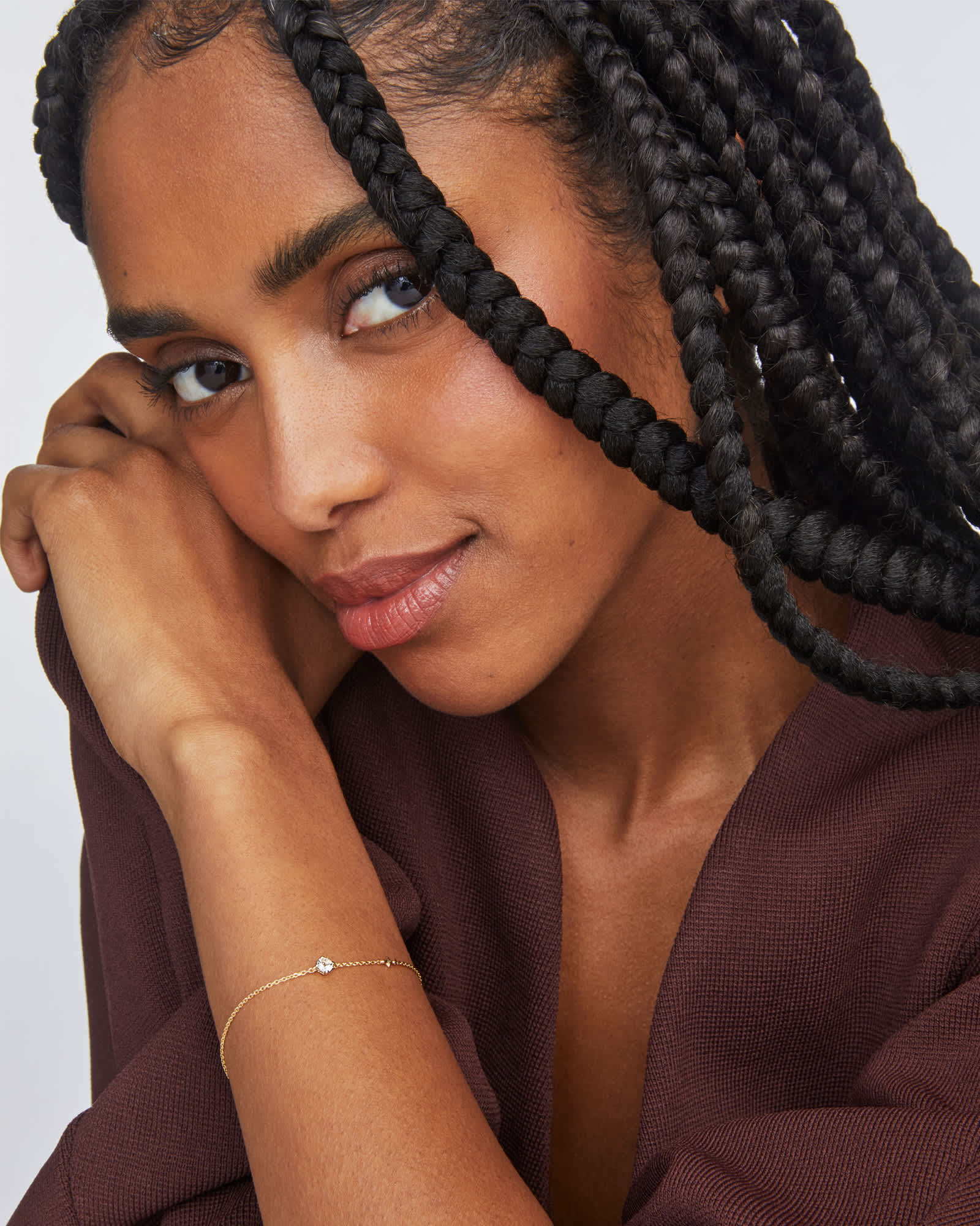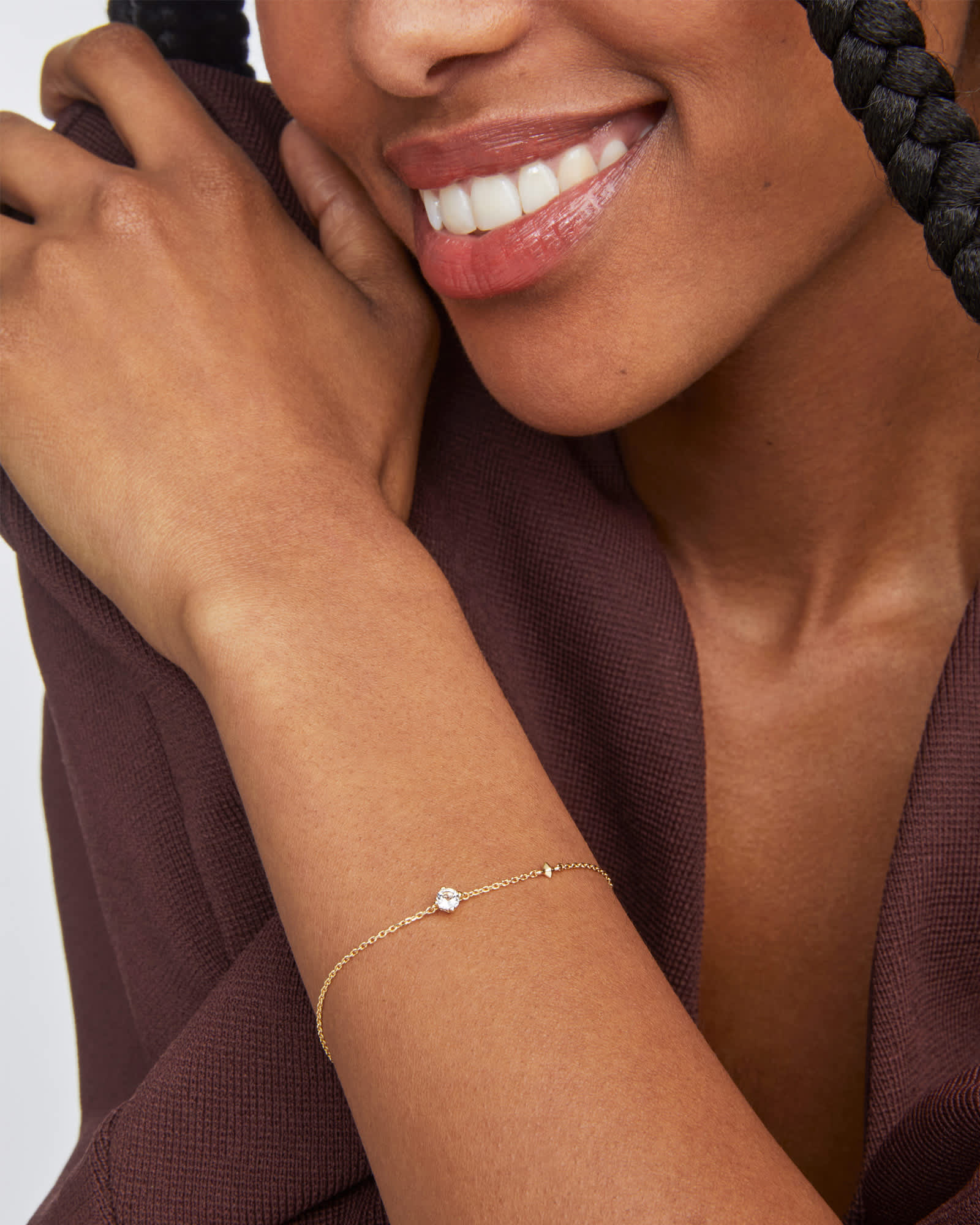Meet this delicate and dainty layer that’s sure to delight. The Maisie 18k Gold Vermeil Delicate Chain Bracelet in White Topaz is our most minimal birthstone style, perfect for personalizing your look with elevated materials. Speaking of personalization, this bracelet features an adjustable closure for a custom fit. White Topaz represents April birthdays, symbolizing health, balance, and positivity.