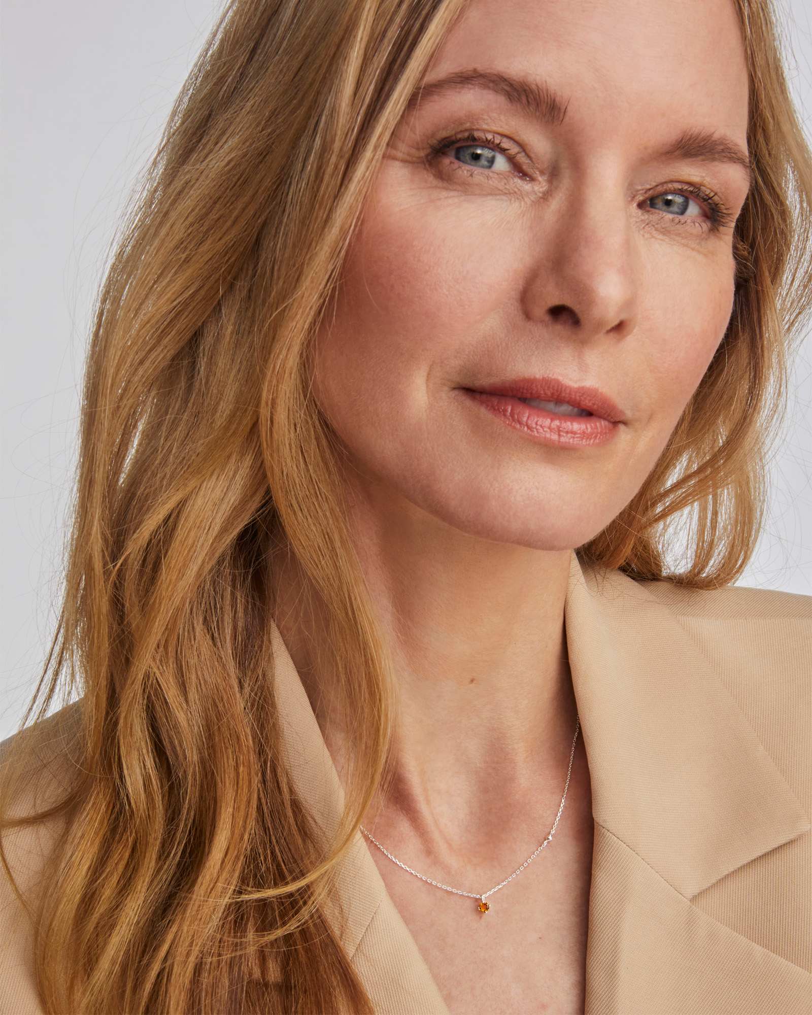 Genuine gemstones shine in our newest dainty essential, the Maisie Sterling Silver Pendant Necklace in Orange Citrine. Minimalists will love wearing this delicate necklace on its own, and maximalists will stack it alongside their go-to essentials for a personalized layered look. Citrine represents November birthdays, inspiring wonder, joy, and creativity.