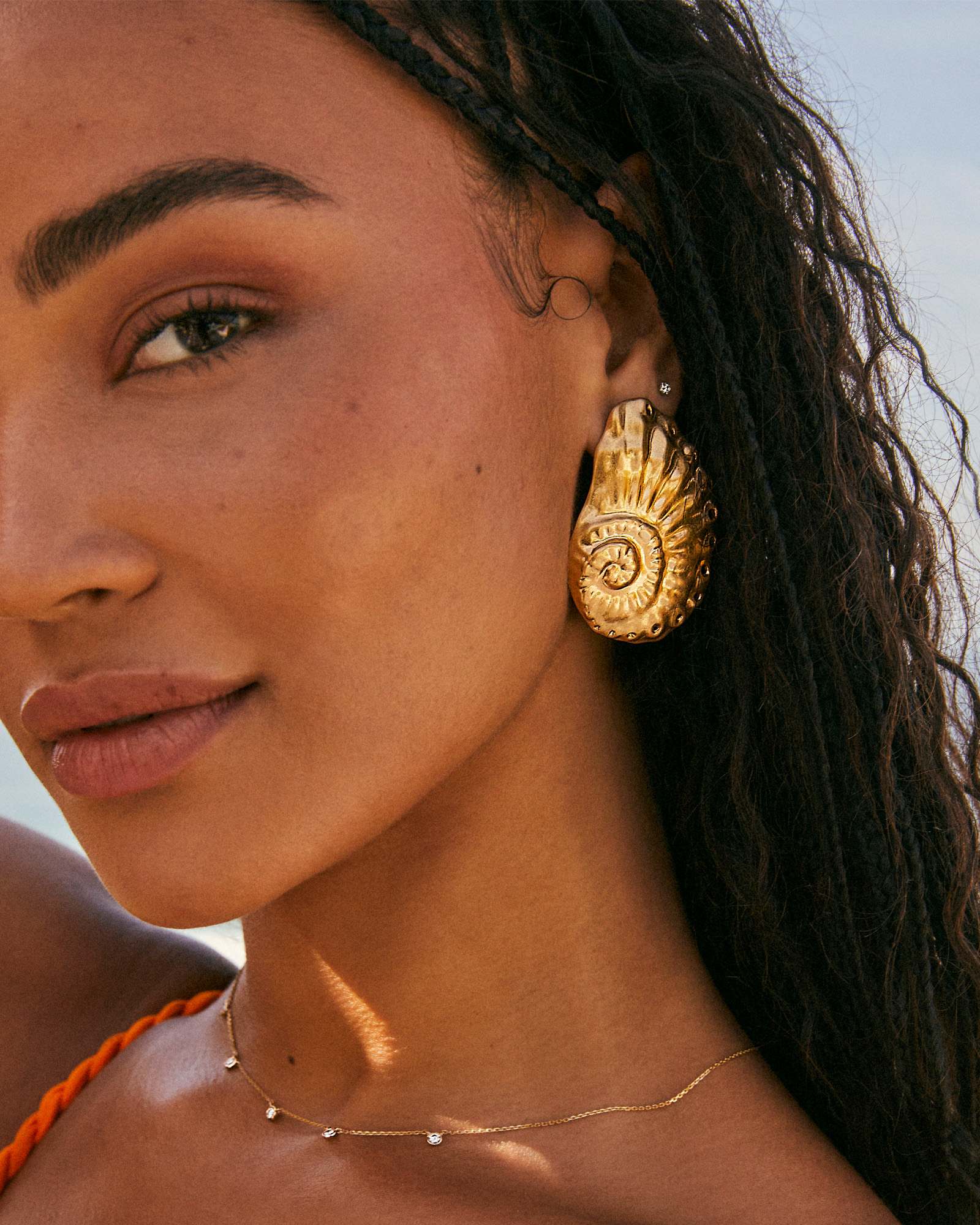 Beach vacation or elevated occasion, the Marina Statement Stud Earrings in Vintage Gold are ready to put you front and center. Crafted in vintage-inspired metal, these oversized shell studs feature a gorgeous textured spiral for added dimension (and drama, too!).