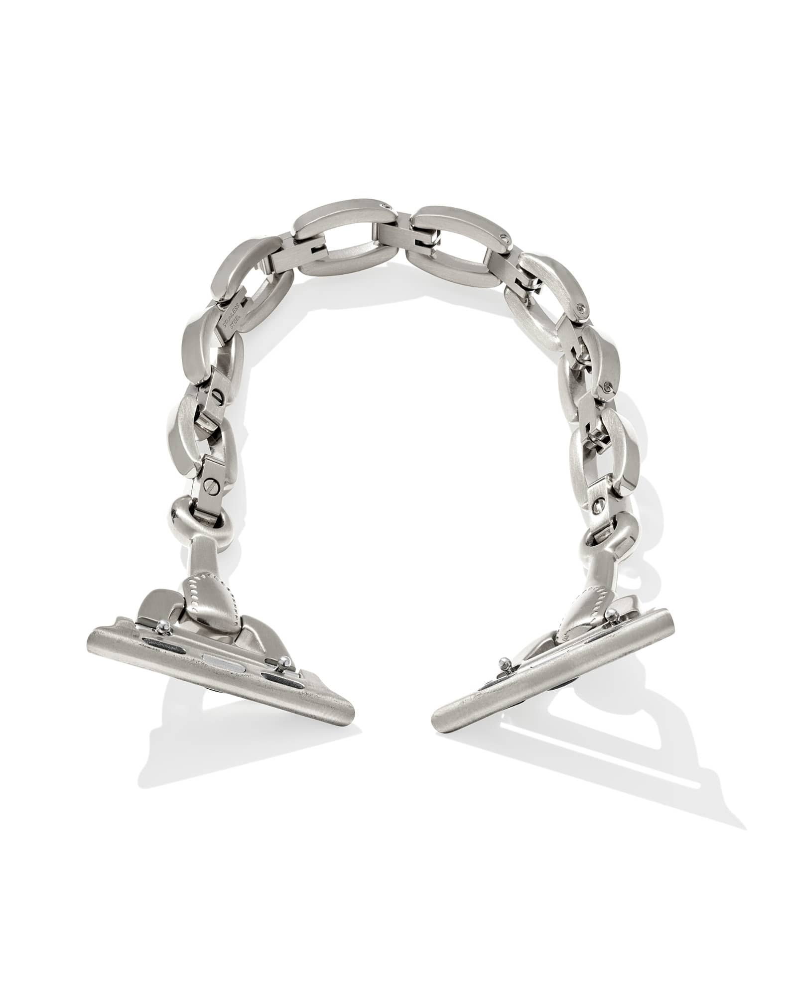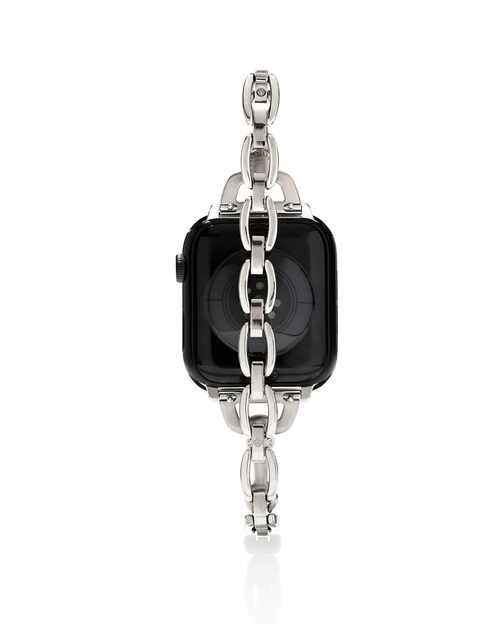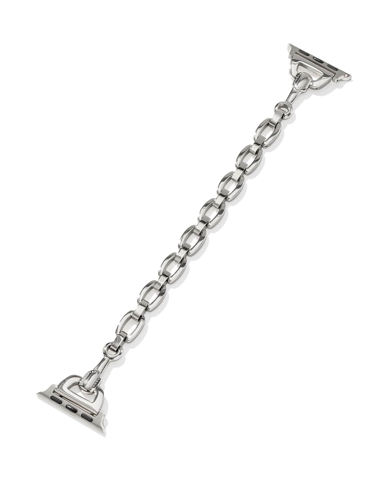 Designed to fit your Apple Watch® and Samsung Galaxy Watch®, the McClain Silver Polished Stainless Steel Watch Band elevates your smartwatch with a beautifully crafted chain that blends in perfectly to any wrist stack or stands glamorously on its own. To switch up your bands, simply press down on the easy release mechanism and then align each new band to the pinholes on either side of the watch.
