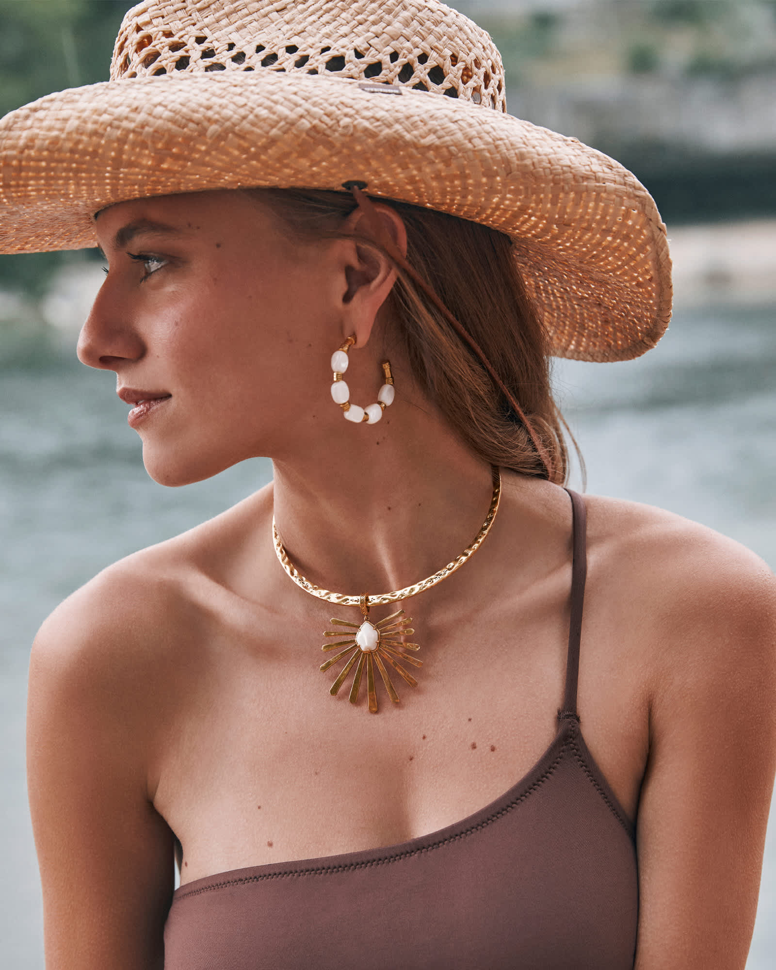 A beaded statement you’ll want to wear everywhere, featuring delicately etched details in vintage-inspired metal paired with elegant stones. The Melinda Vintage Gold Beaded Hoop Earrings add playfulness to any ear stack, but look just as stunning solo. These earrings are a part of Yellow Rose by Kendra Scott—a brand that celebrates ranch life with Kendra Scott staples alongside select curated jewelry pieces and accessories.