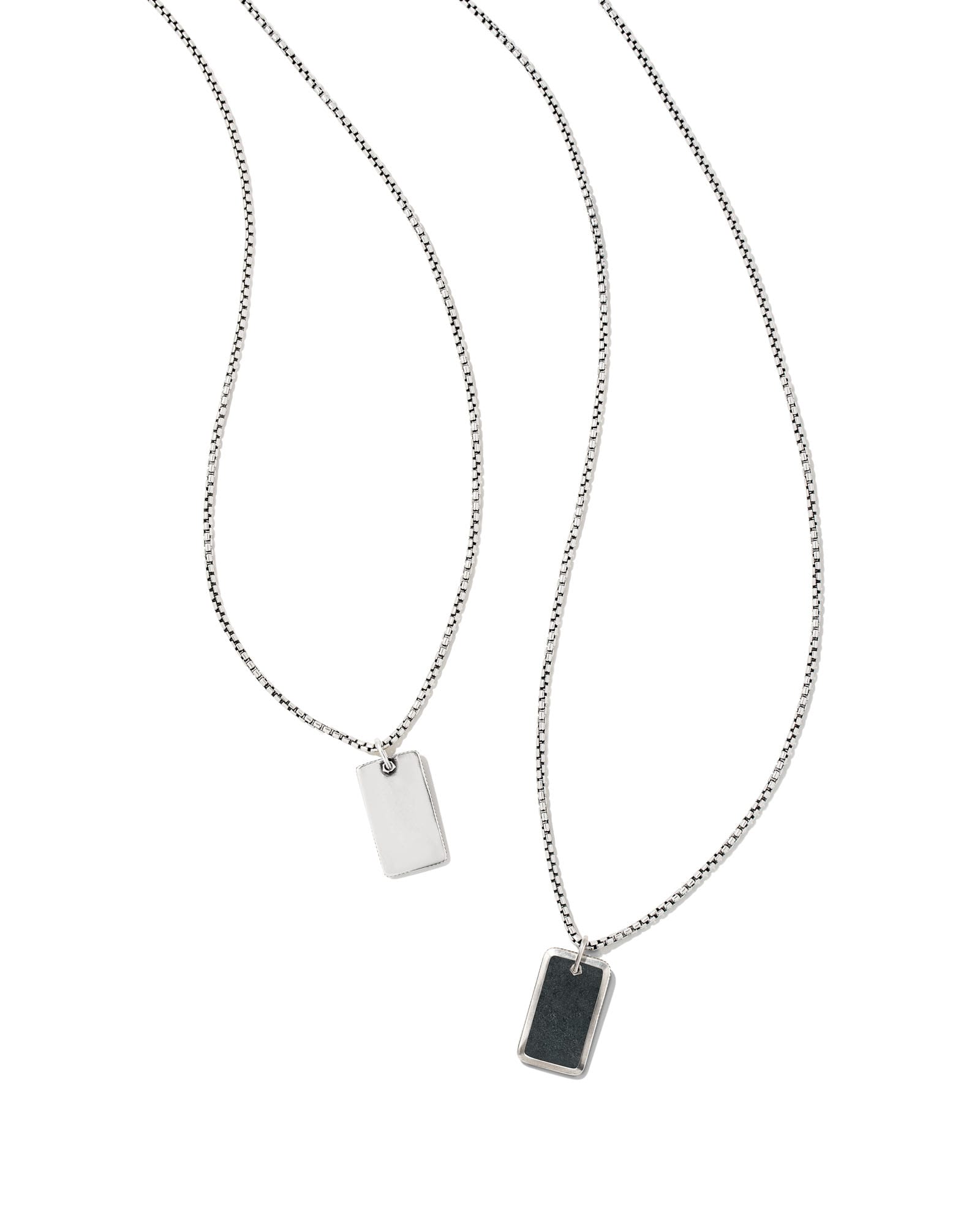 A classic dog tag necklace elevated by a Black Hematite stone-inlaid plate. Crafted with a hard-wearing Oxidized Sterling Silver, the Men’s Dog Tag Necklace in Black Hematite is a natural match for daily wear—whether you’re keeping it casual or going for something sharper.