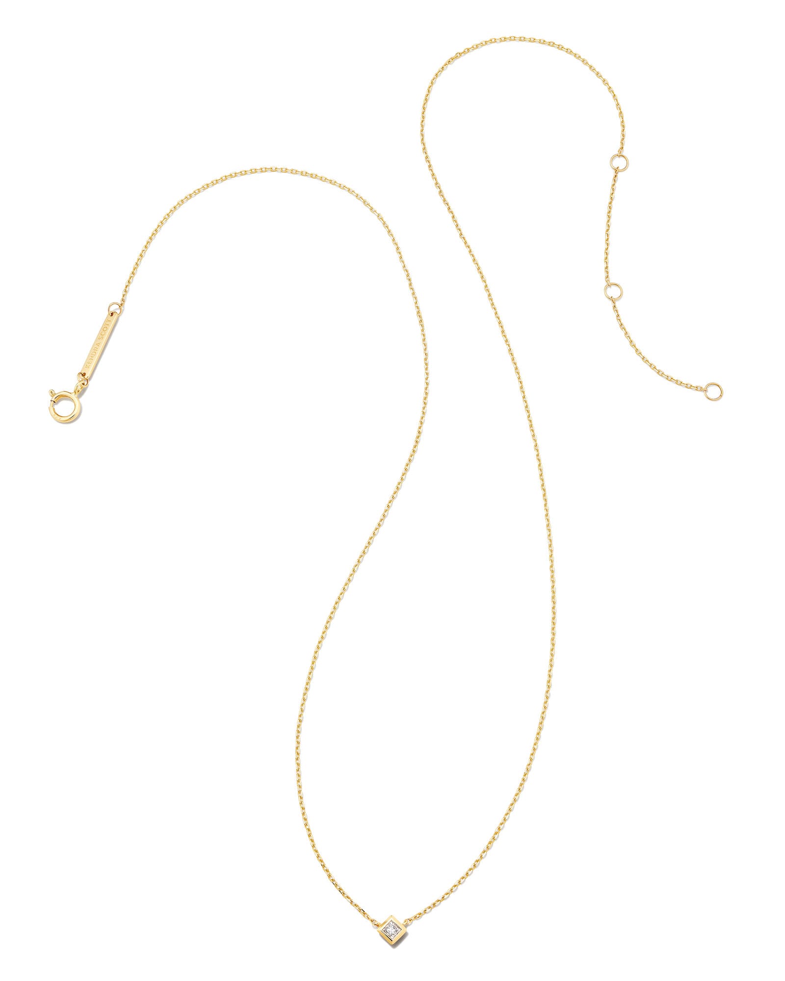 Our Michelle 14k Yellow Gold Pendant Necklace in White Diamond features a princess cut White Diamond and an elegant metal frame. With its simple chain and stunning sparkle, this necklace is one youāll want to wear forever and ever.
