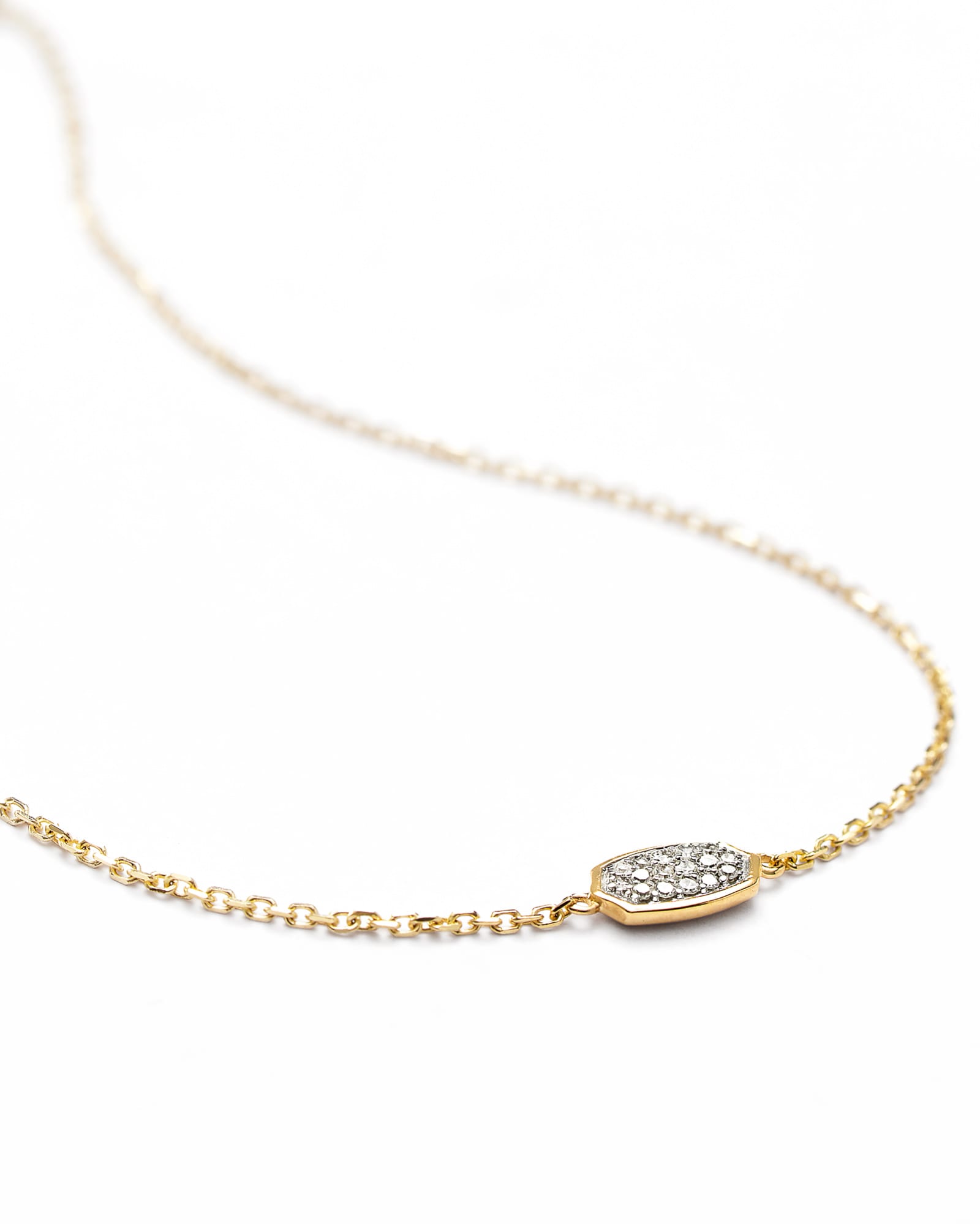 Carefully placed Pave Diamonds on a background of 14k Yellow Gold provide the perfect amount of sparkle to the Millicent Delicate Chain Bracelet, an elegant addition to your wardrobe that will fit in with everything you wear.