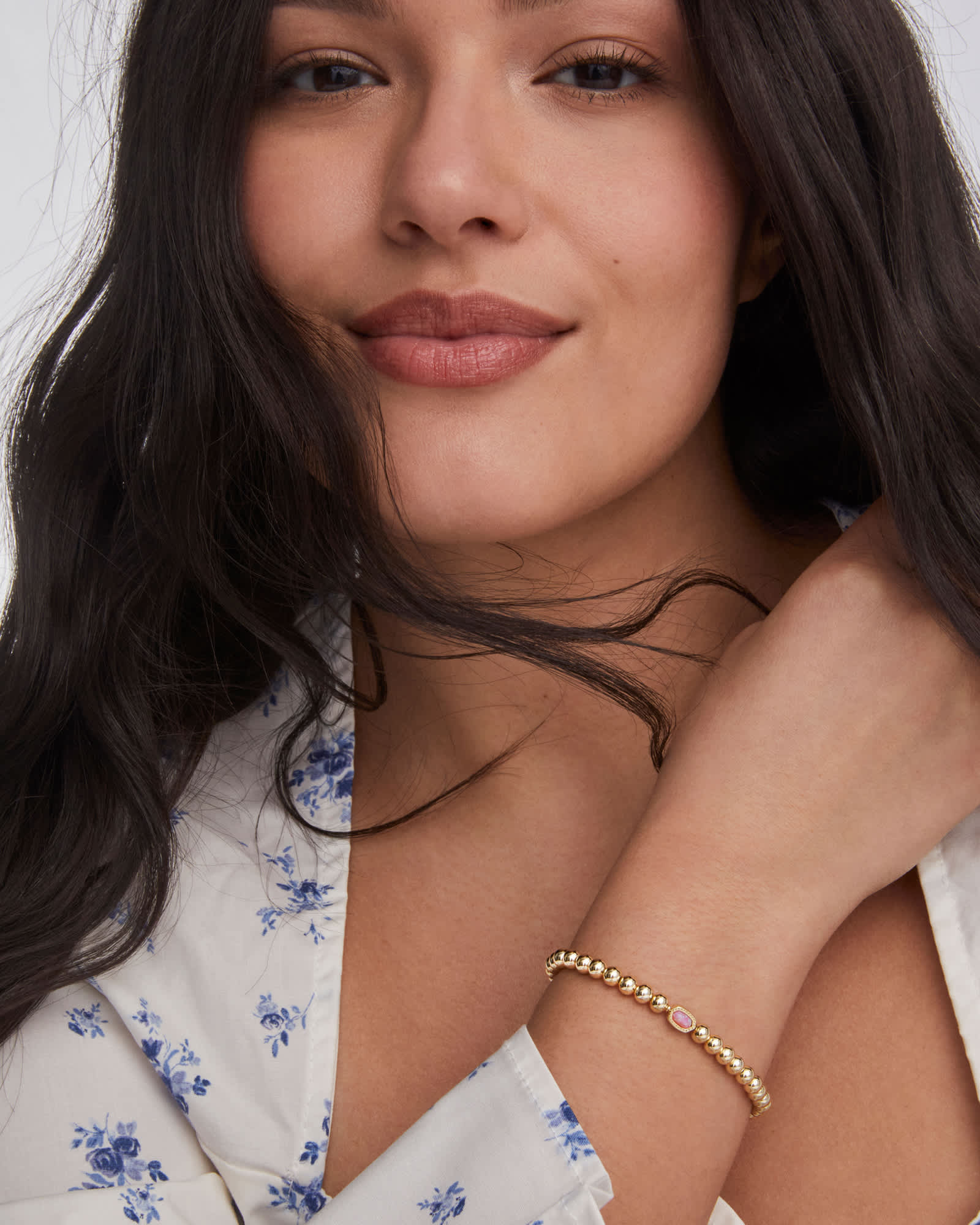 A wrist stack essential, meet the Mini Elaina Gold Stretch Bracelet. Pairing our dainty mini Elaina framed in classic hoofprint detailing with beads that offer a near-blinding shine, this piece is both chic and playful. Let it speak for itself or stack it with your favorite bracelets, you canāt wear this one wrong.