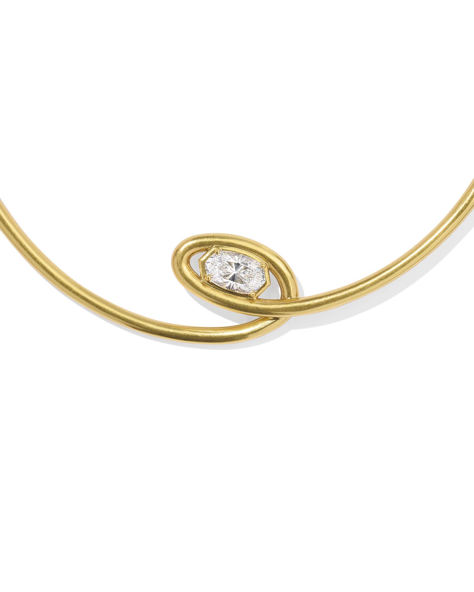 A favorite from our archives for its distinct silhouette, we’re reintroducing the Myles Vintage Gold Crystal Collar Necklace in White CZ. Accented with a radiant crystal in our signature shape, this collar-grazing outline design maintains its sweeping form for added dimension. Artfully abstract, this style is perfect for trendsetters—or anyone wanting to make a one-of-a-kind statement.