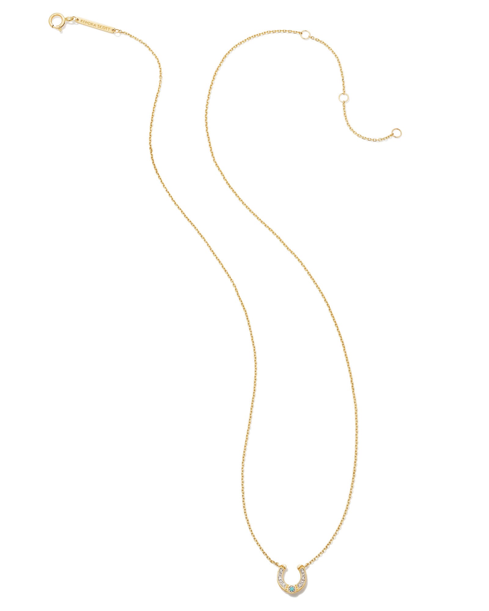 Add a dainty symbol of luck to your necklace stack with the Noble 14k Yellow Gold Horseshoe Short Pendant Necklace in Turquoise. The classic horseshoe shape is elevated with long-lasting 14k Gold and a petite white diamond stud. This necklace is a part of Yellow Rose by Kendra Scottāa brand that celebrates ranch life with Kendra Scott staples alongside select curated jewelry pieces and accessories. We have taken steps to ensure that, when applicable, our diamonds are conflict free by requiring our suppliers to comply with the Kimberley Process.
