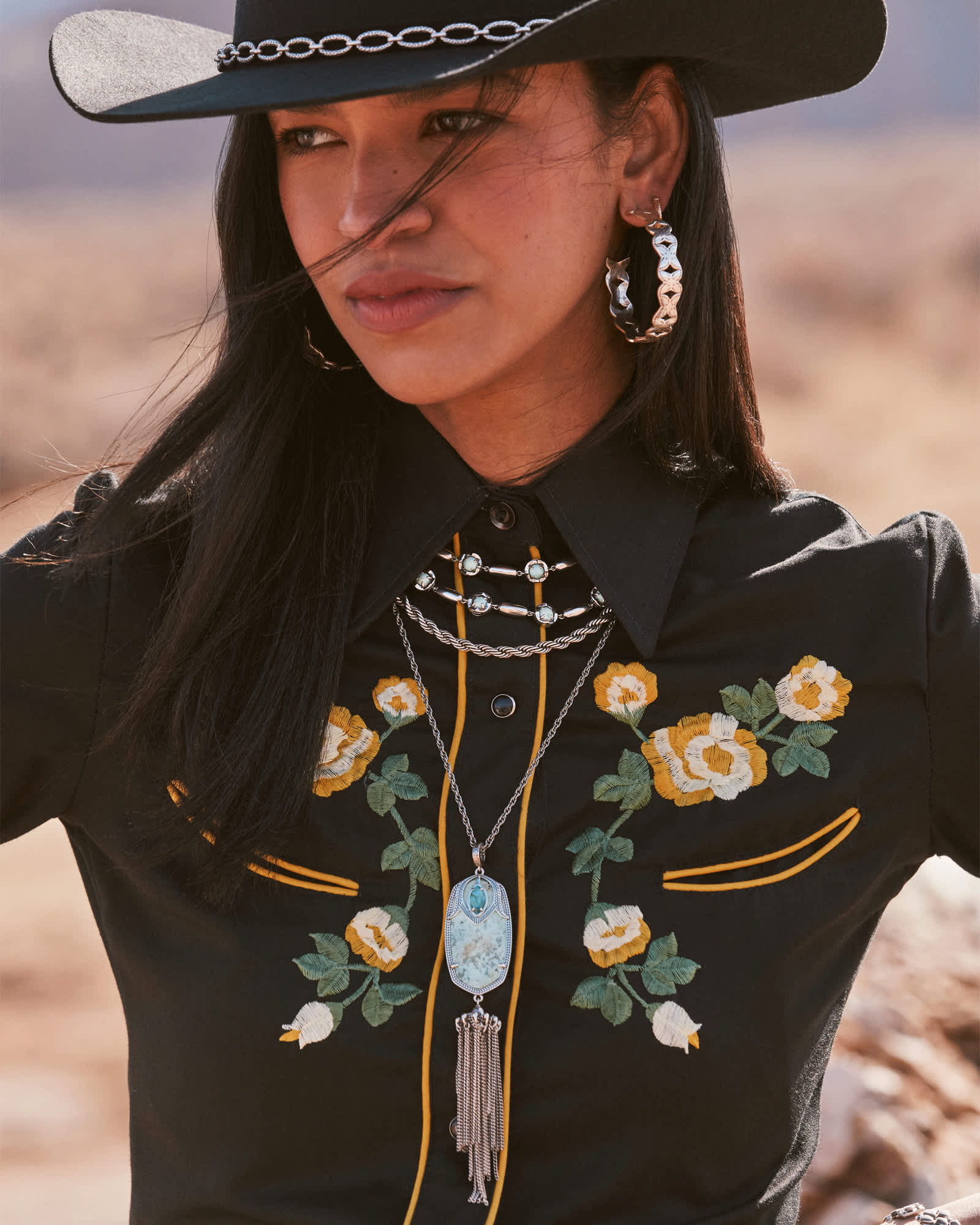 This necklace is a part of Yellow Rose by Kendra Scott—a brand that celebrates ranch life with Kendra Scott staples alongside select curated jewelry pieces and accessories.