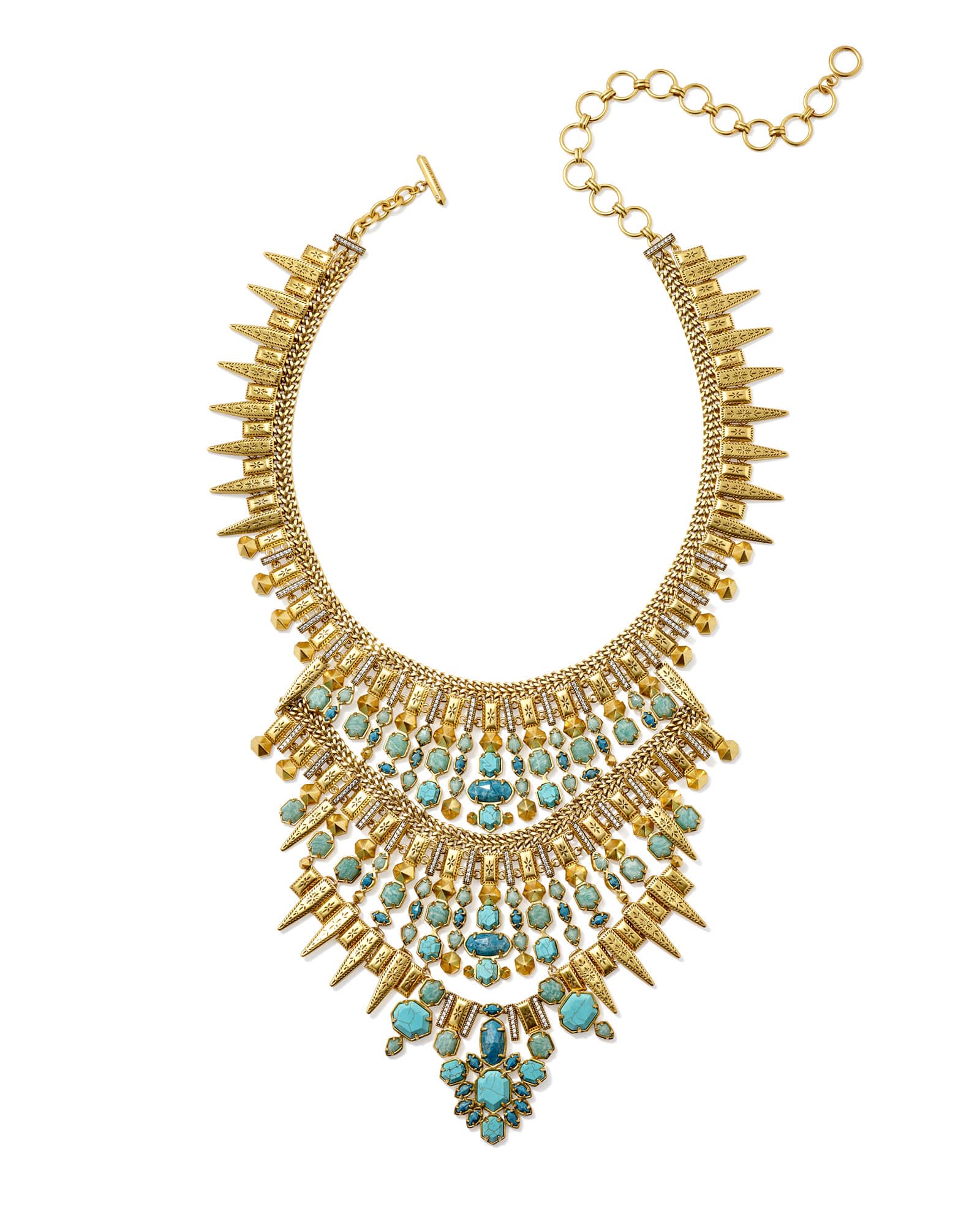 Serayah Vintage Gold Statement Necklace in Teal Mix