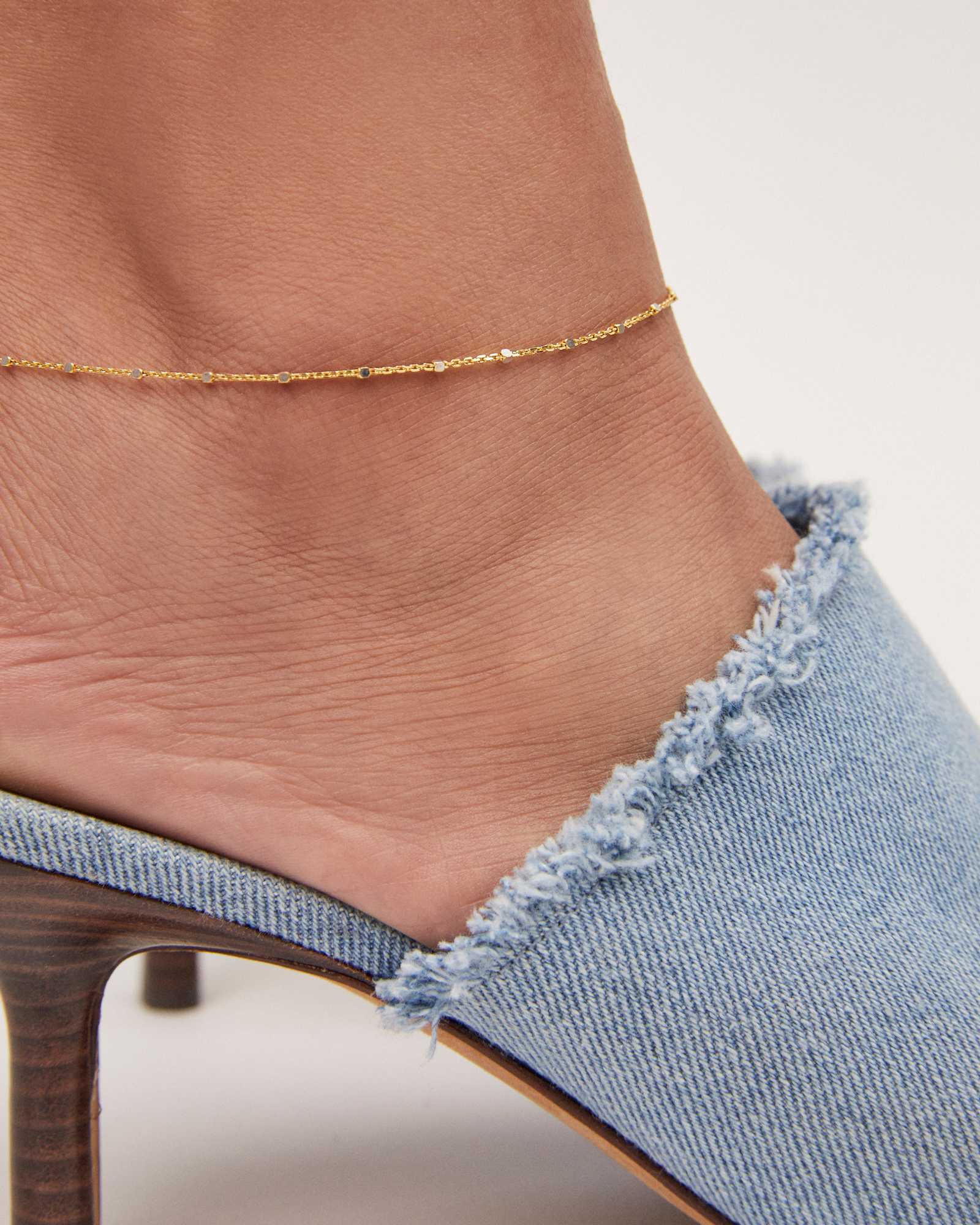 Single Satellite Chain Anklet in Sterling Silver & 18k Yellow Gold Vermeil