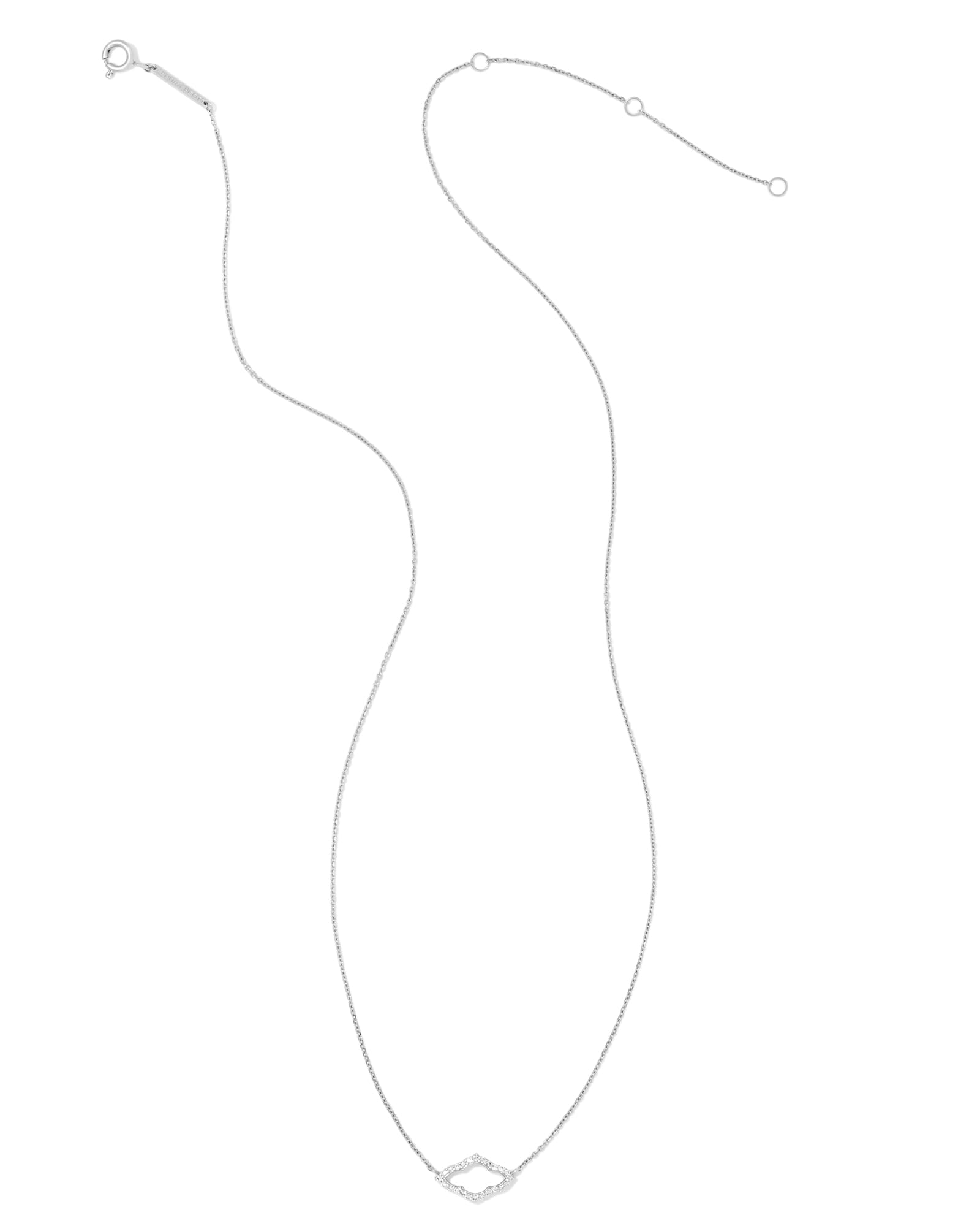 A KS icon gets her most glam look yet in the Small Abbie 14k White Gold Pendant Necklace in White Diamond. A petite, elongated iteration of our iconic medallion logo, this open-frame pendant is studded with diamonds for a sparkle thatāll last today, tomorrow, and always.