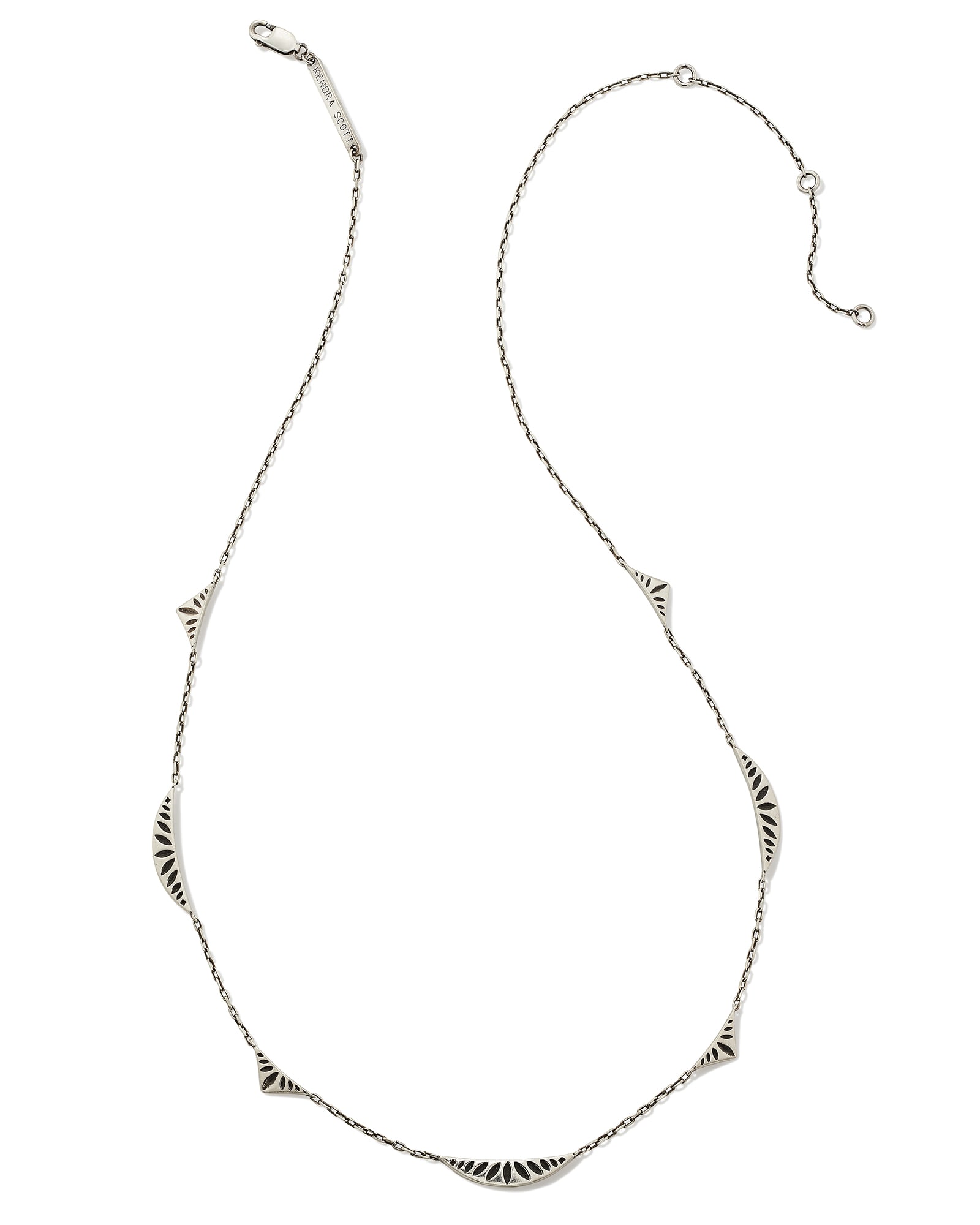 Wanting to add some unique dimension to your necklace stack? Look no further than the Sophee Strand Necklace in Oxidized Sterling Silver. Crafted in long-lasting metal, this strand features rounded and triangular ridges with a hoofprint design, a signature brand detail. Instantly eye-catching, this necklace will add a fun spin to your everyday layers. This necklace is a part of Yellow Rose by Kendra Scottāa brand that celebrates ranch life with Kendra Scott staples alongside select curated jewelry pieces and accessories.