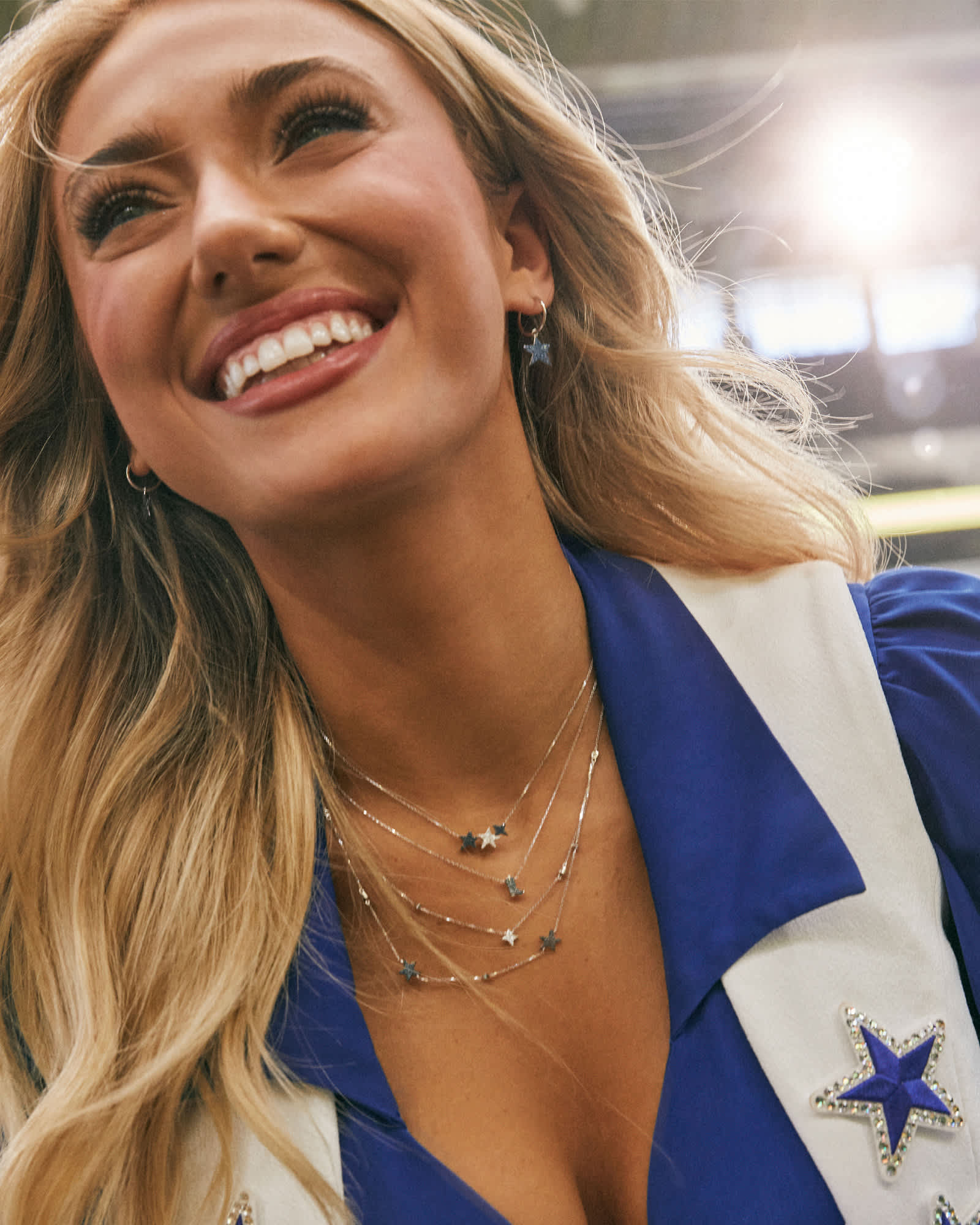 Cheer on America’s Team in style with the Star 14k White Gold Huggie Earrings. Complete with chic metal hoops and sparkling blue sapphire star charms, these huggies are a collection must-have for every Dallas Cowboys fan.