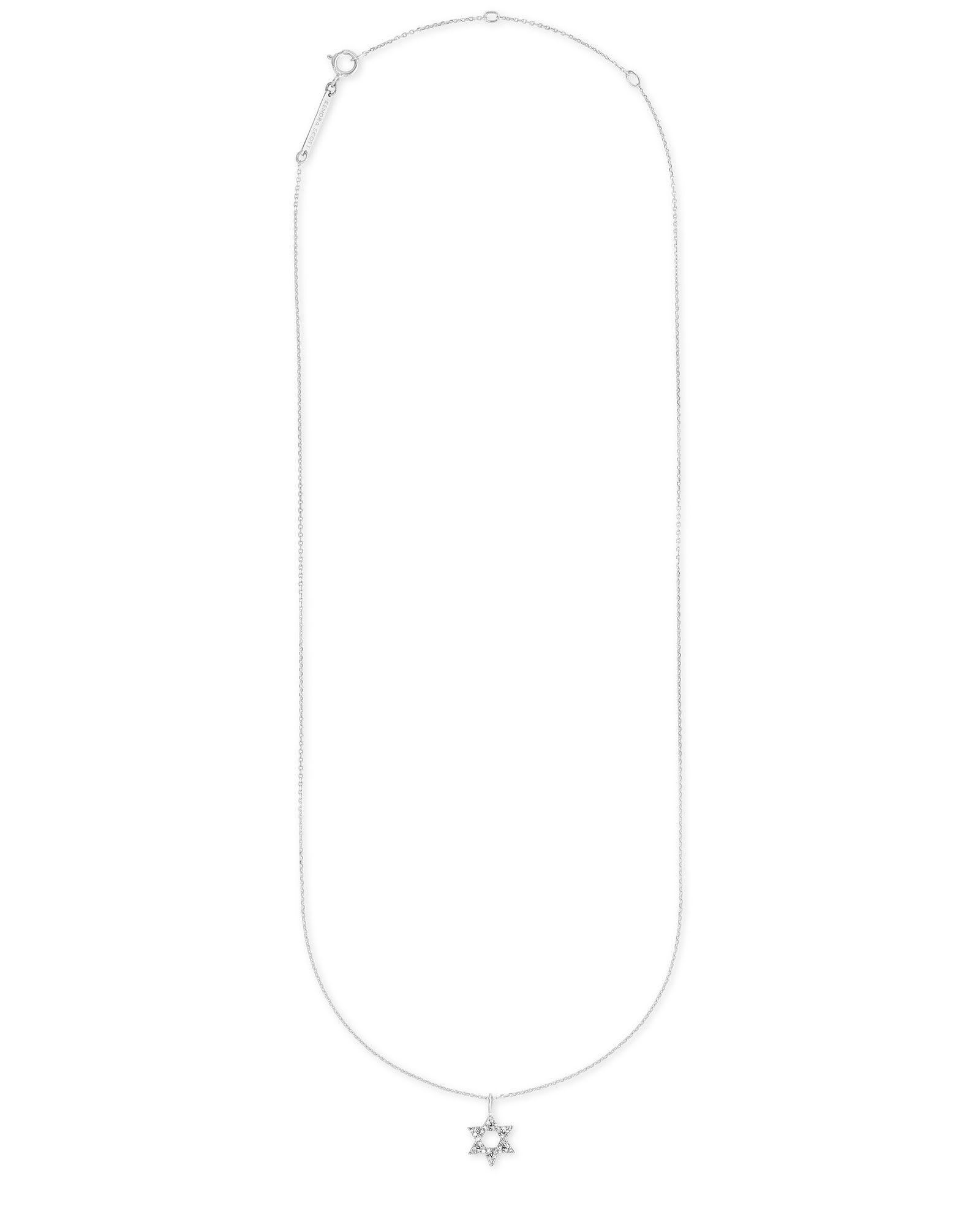 A meaningful symbol dressed in diamonds, the Star of David 14k White Gold Pendant Necklace in White Diamonds brings new life to a classic. This 14k White Gold pendant necklace is designed to bring maximum sparkle to a petite piece that you can wear every day both layered and alone. Personalize your style with the Star of David 14k White Gold Pendant Necklace, a forever accessory with modern timelessness.