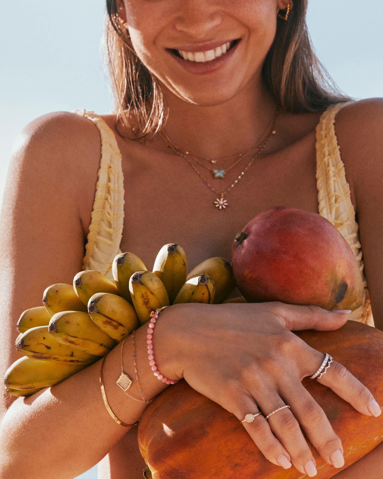 When it comes to achieving the layered texture you want, beaded details can’t be beat. Meet the Sylvia Gold Stretch Bracelet: A vibrant addition to any wrist stack. Featuring a toggle closure with a nod to our bestselling silhouette, this piece is always a fun pick.